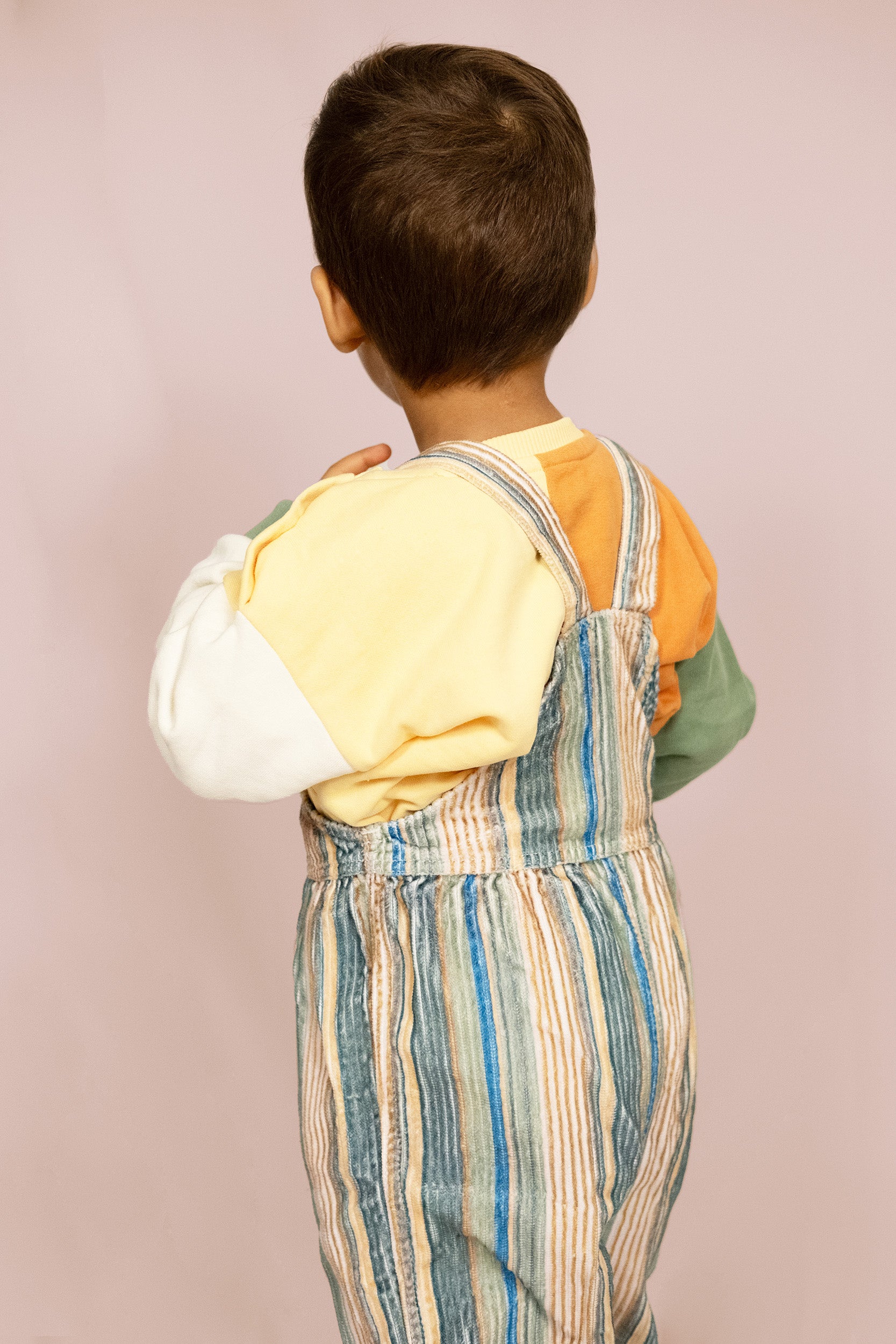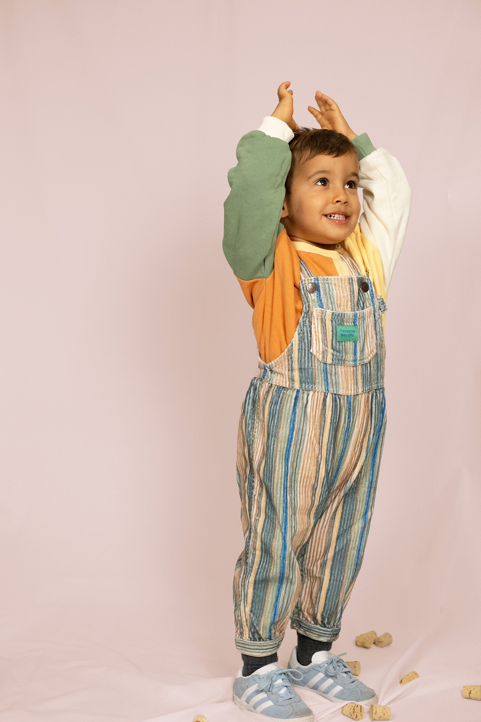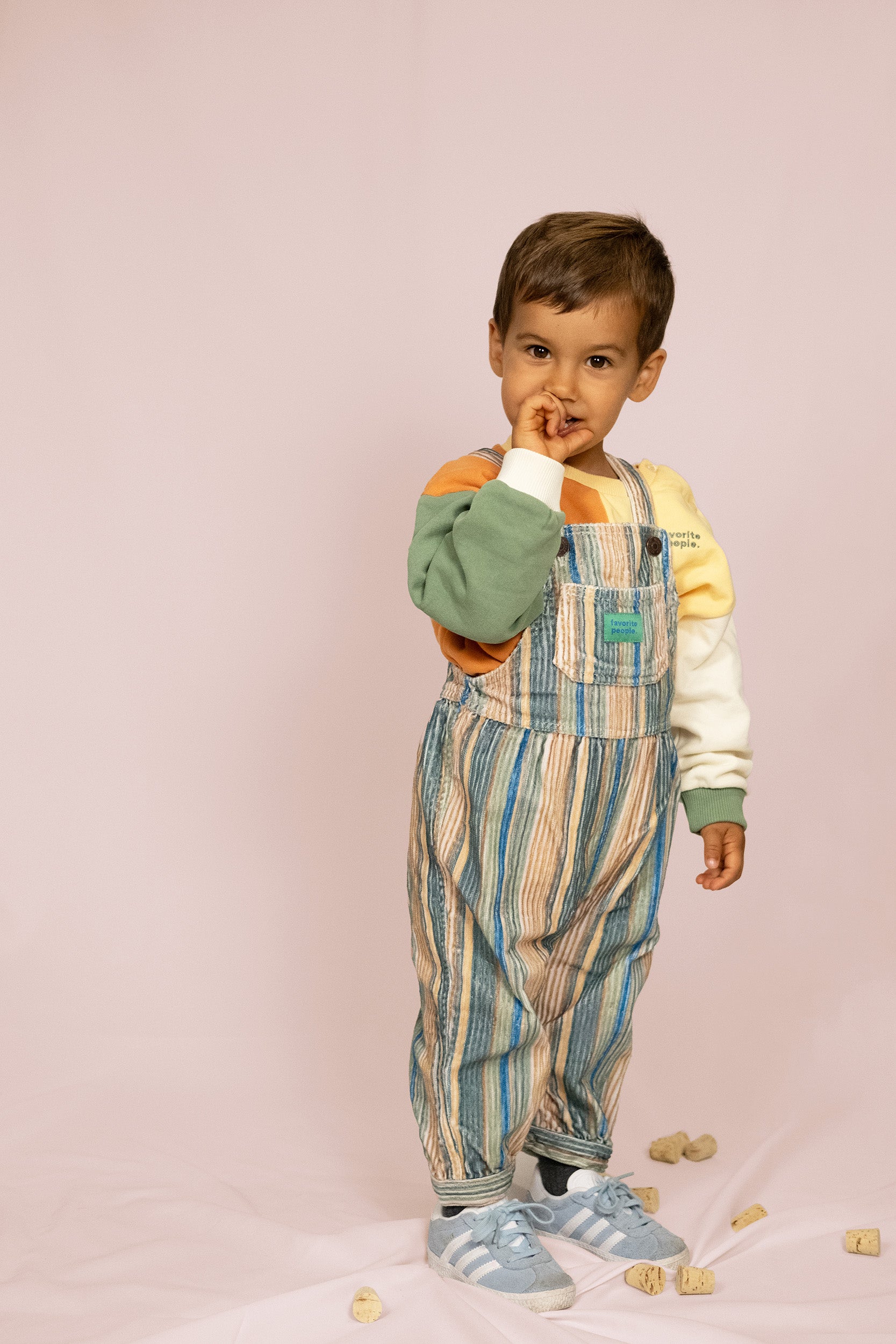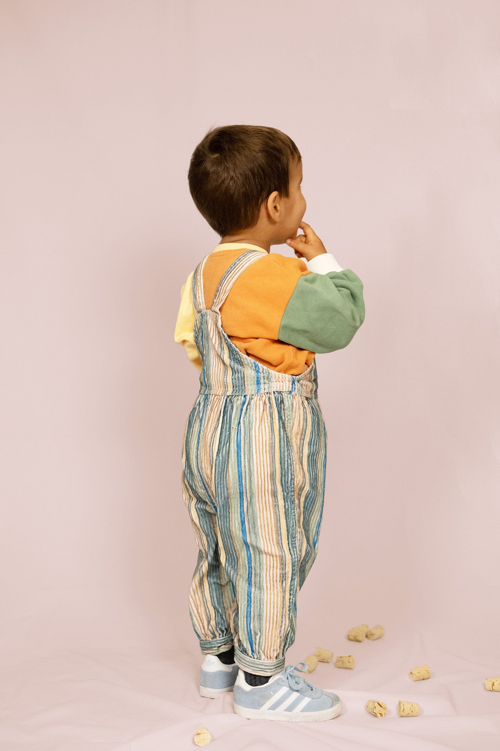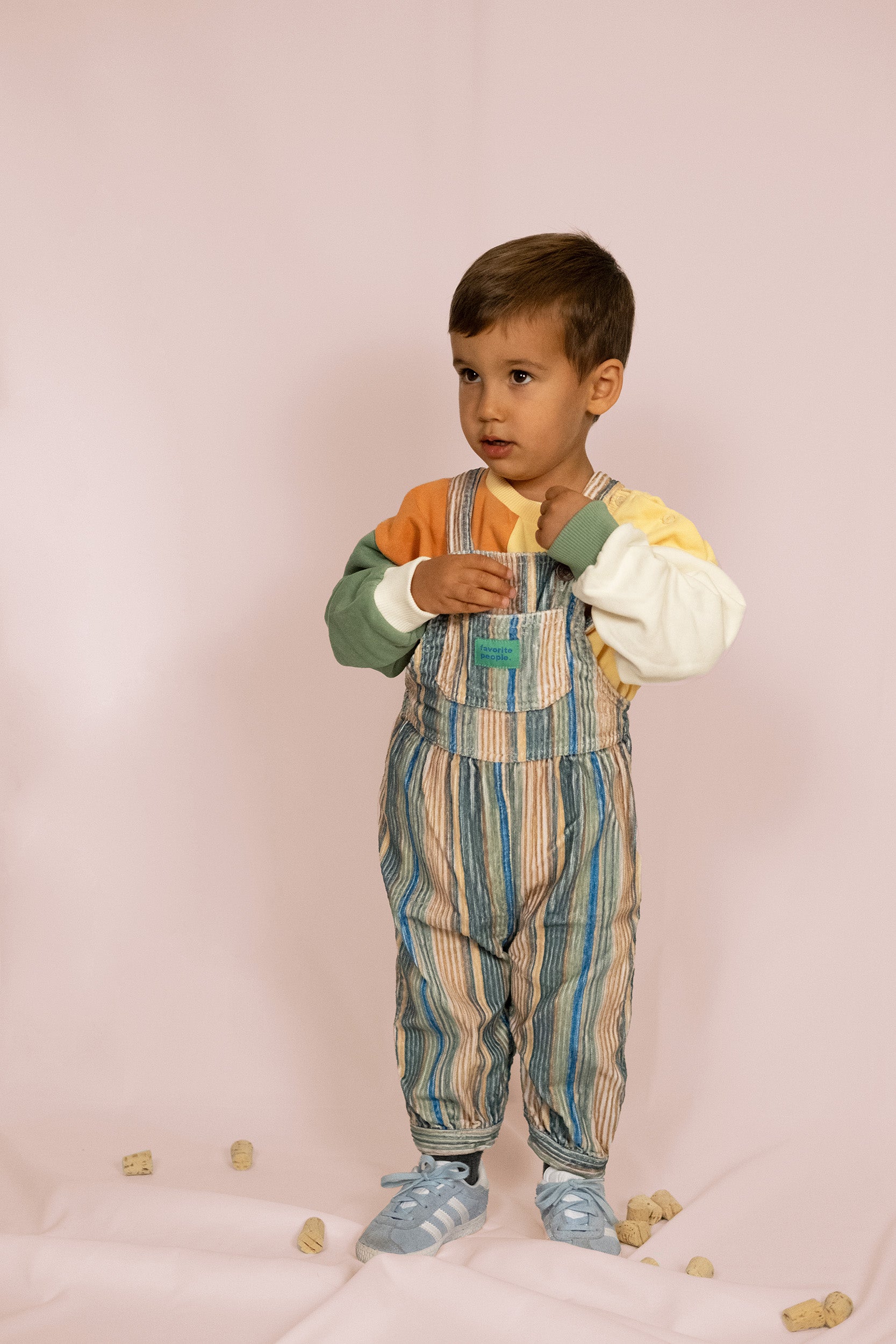 Adorable and functional, this 100% cotton multicoloured striped baby overalls features adjustable straps with buttons, a front pocket with our logo and snap buttons for easy diaper changes. Proudly made in Portugal. Wash inside out and separately for best care. Perfect for your favorite baby!