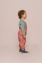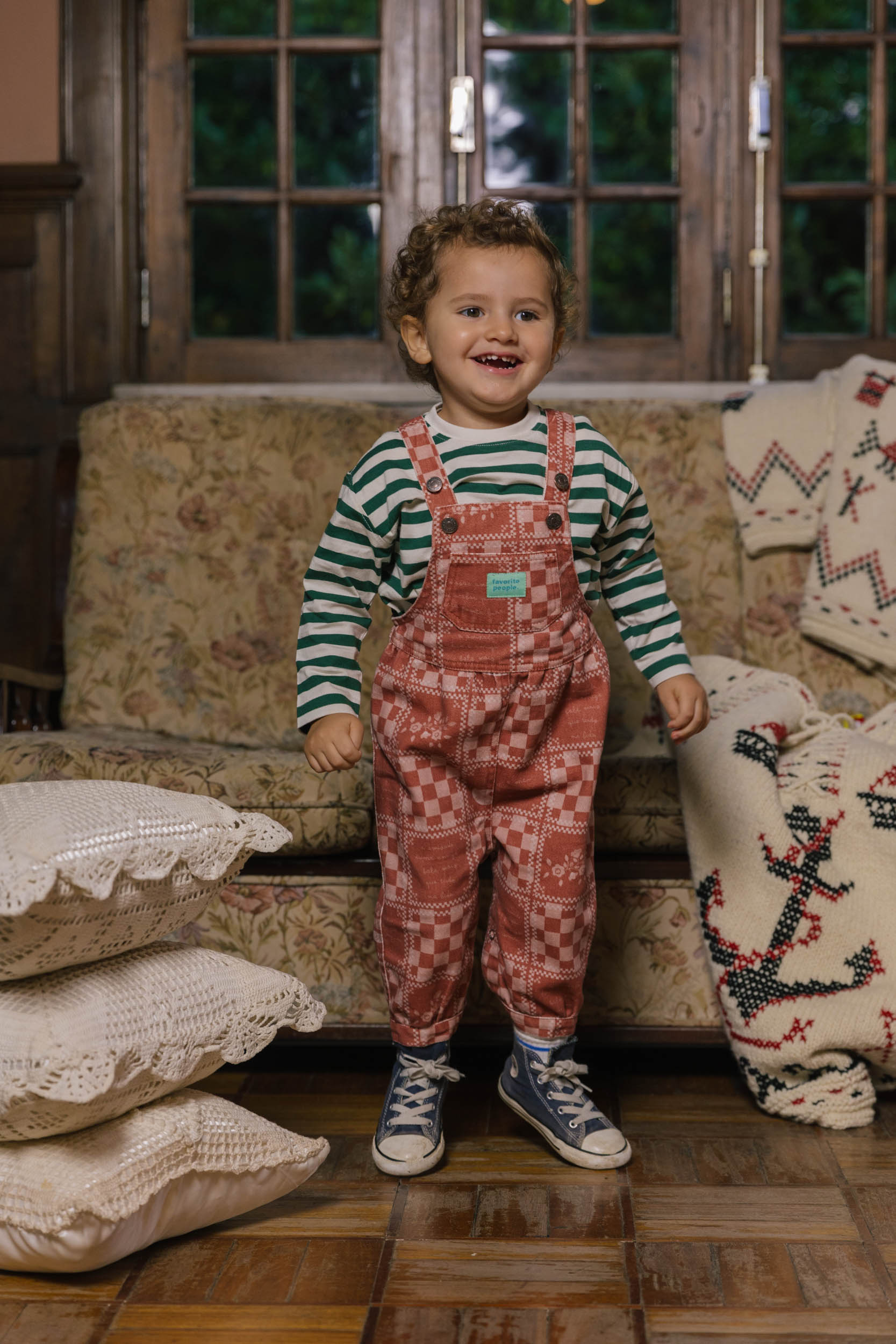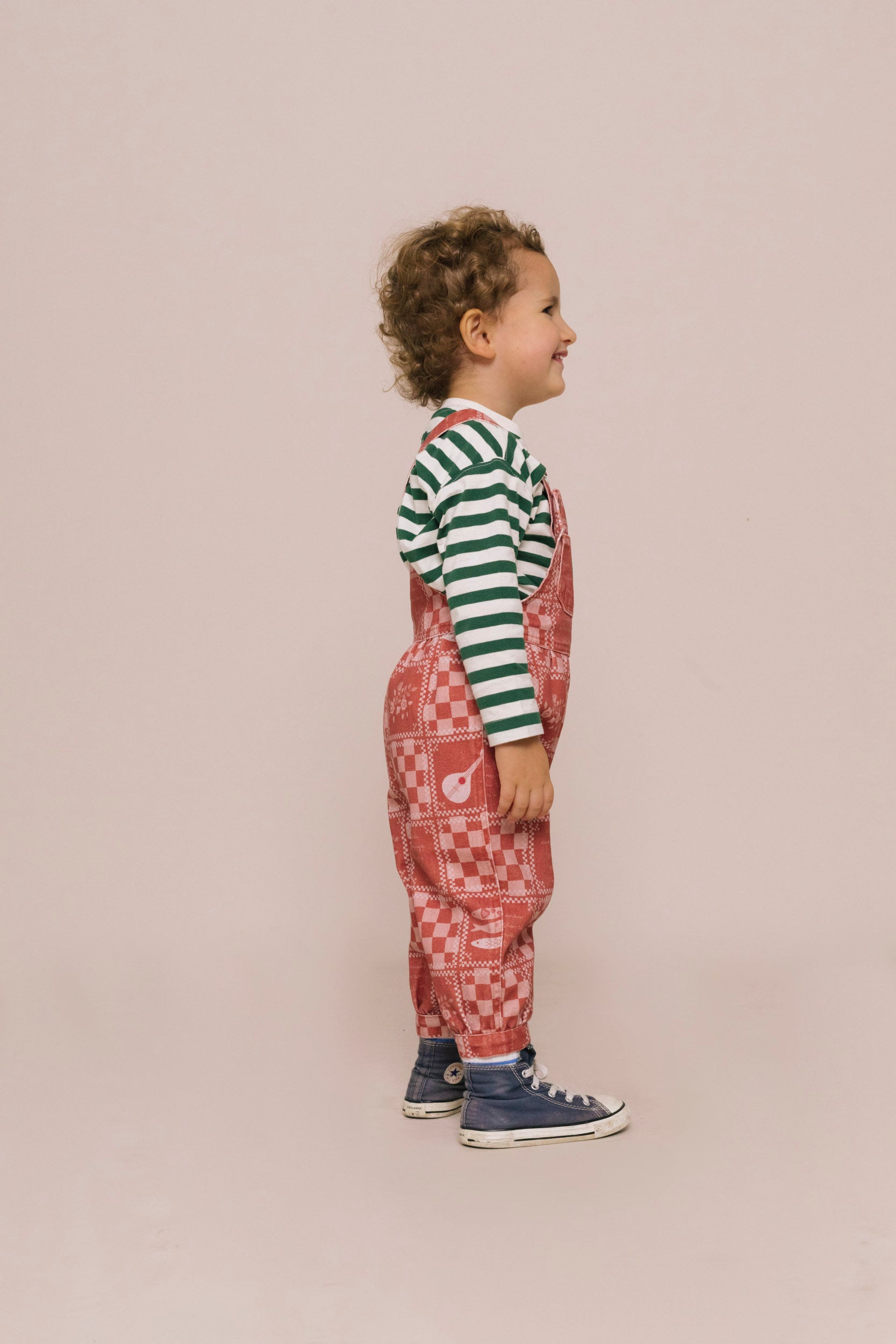 Adorable and functional, this 100% cotton red and white baby overalls features adjustable straps with buttons, a front pocket with our logo and snap buttons for easy diaper changes. Proudly made in Portugal. Wash inside out and separately for best care. Perfect for your favorite baby!
