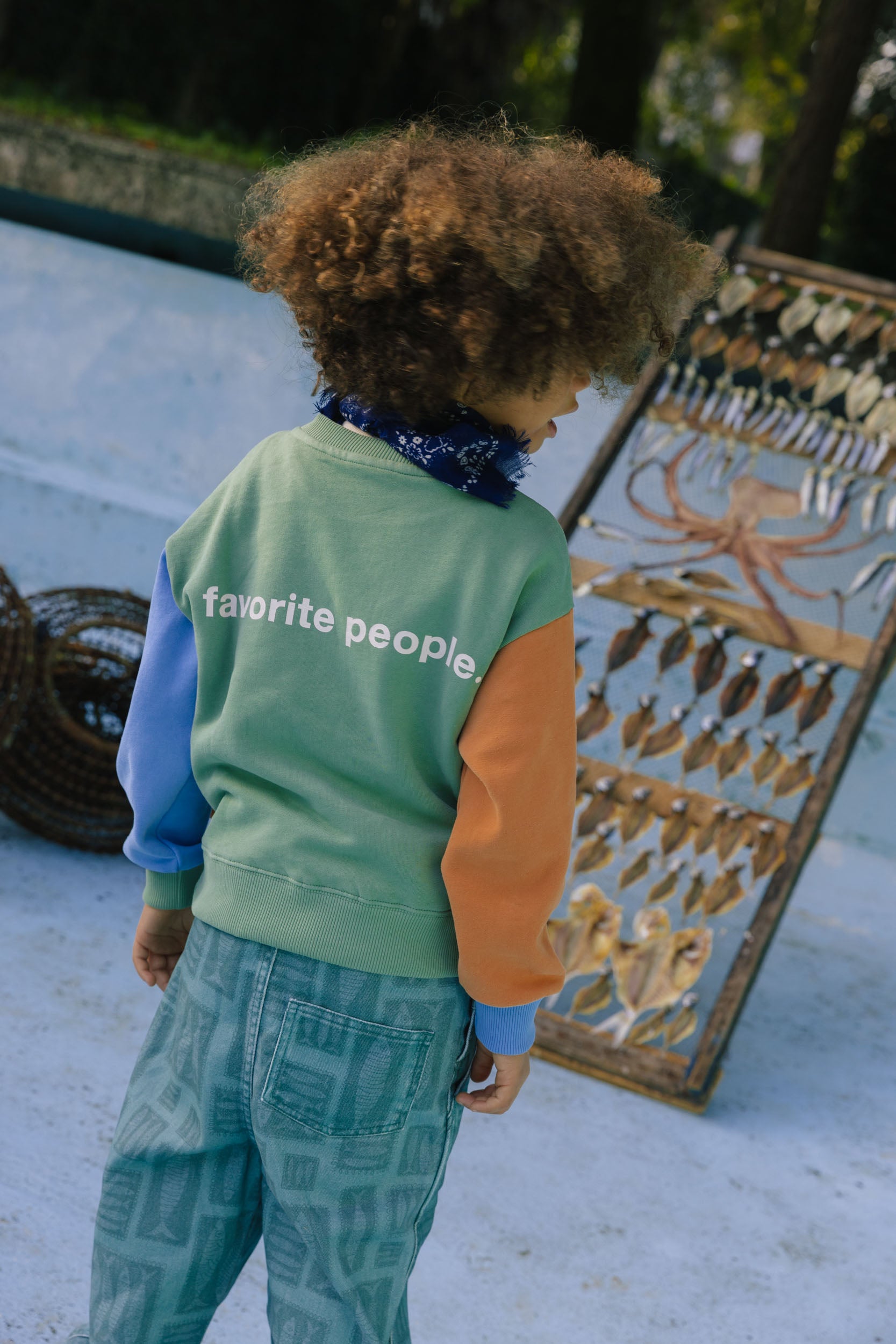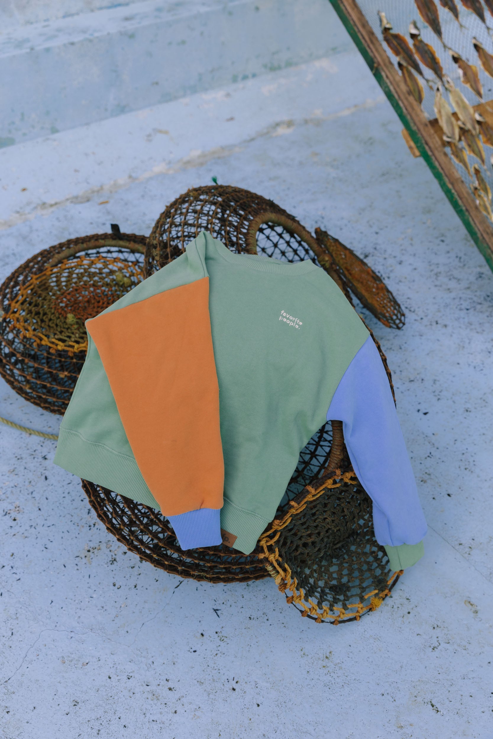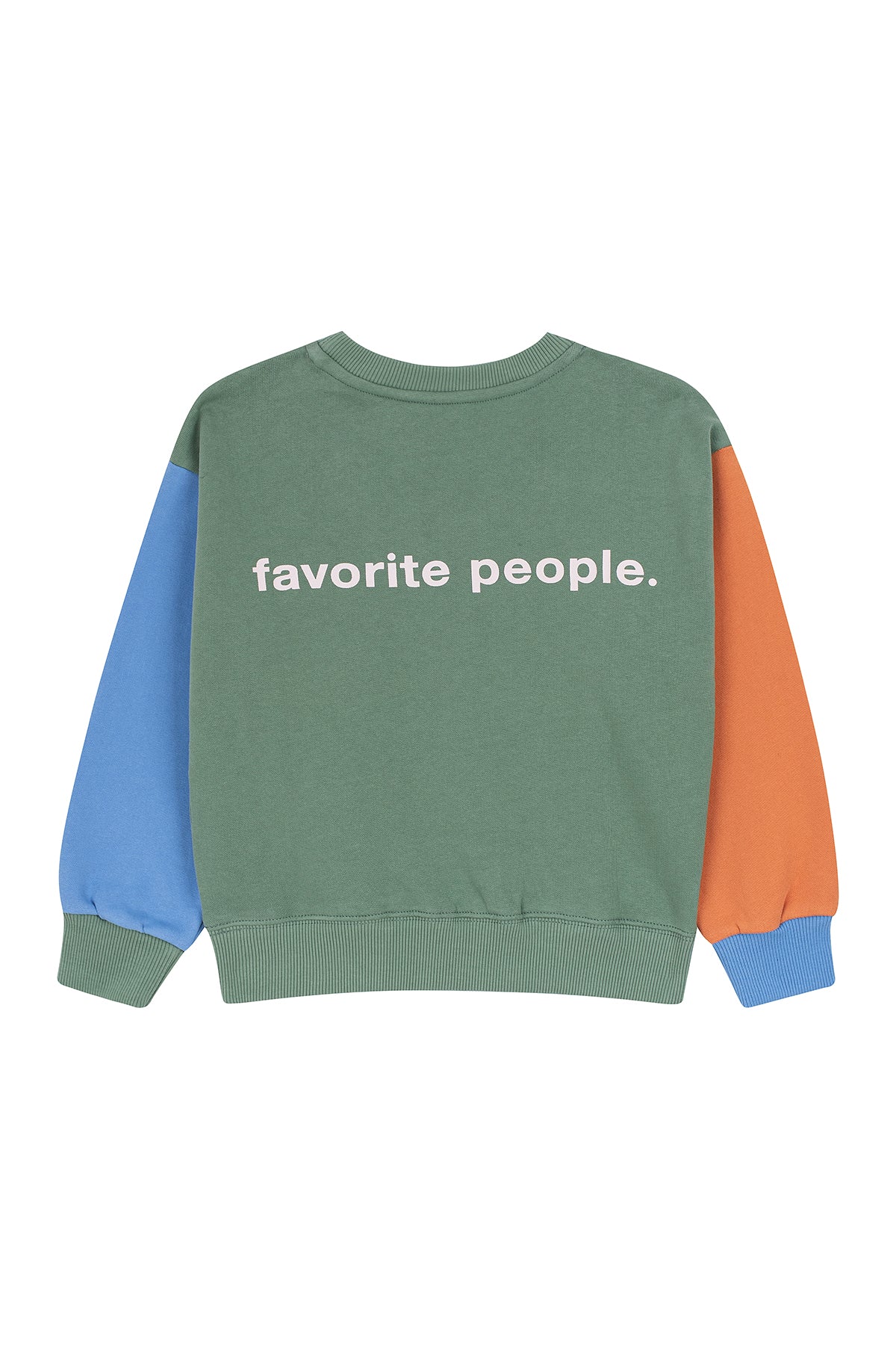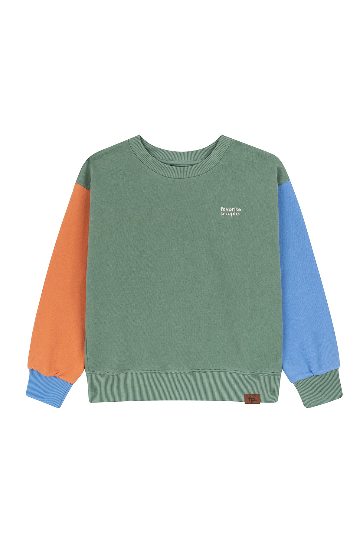 This color-block sweater is made in Portugal from 100% premium cotton, features a carded interior with soft fleece fabric for added warmth and comfort. It has the Favorite People logo printed small on the front and large on the back. Offering softness, durability, and everyday ease, it’s designed with a relaxed fit, ribbed cuff, and a crew neckline, making it as stylish as it is practical—perfect for any adventure. Easy to pair with the coolest overalls in the world, it’s a versatile addition to any wardrobe. For best care, wash inside out and avoid mixing with other garments.