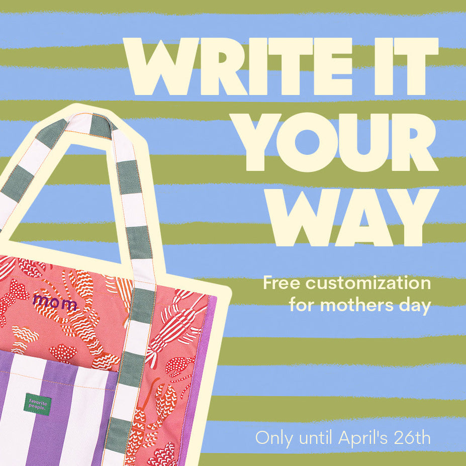 Customize your Mother's Day daily favorites or tote bag with an embroidered short message. For free.