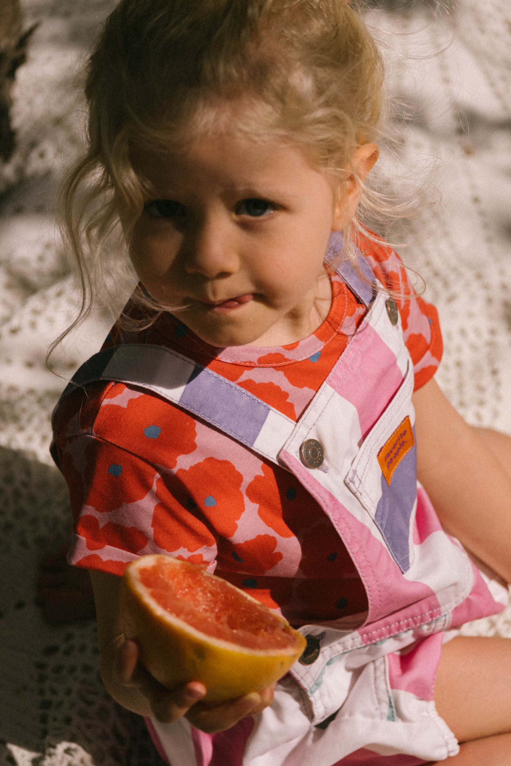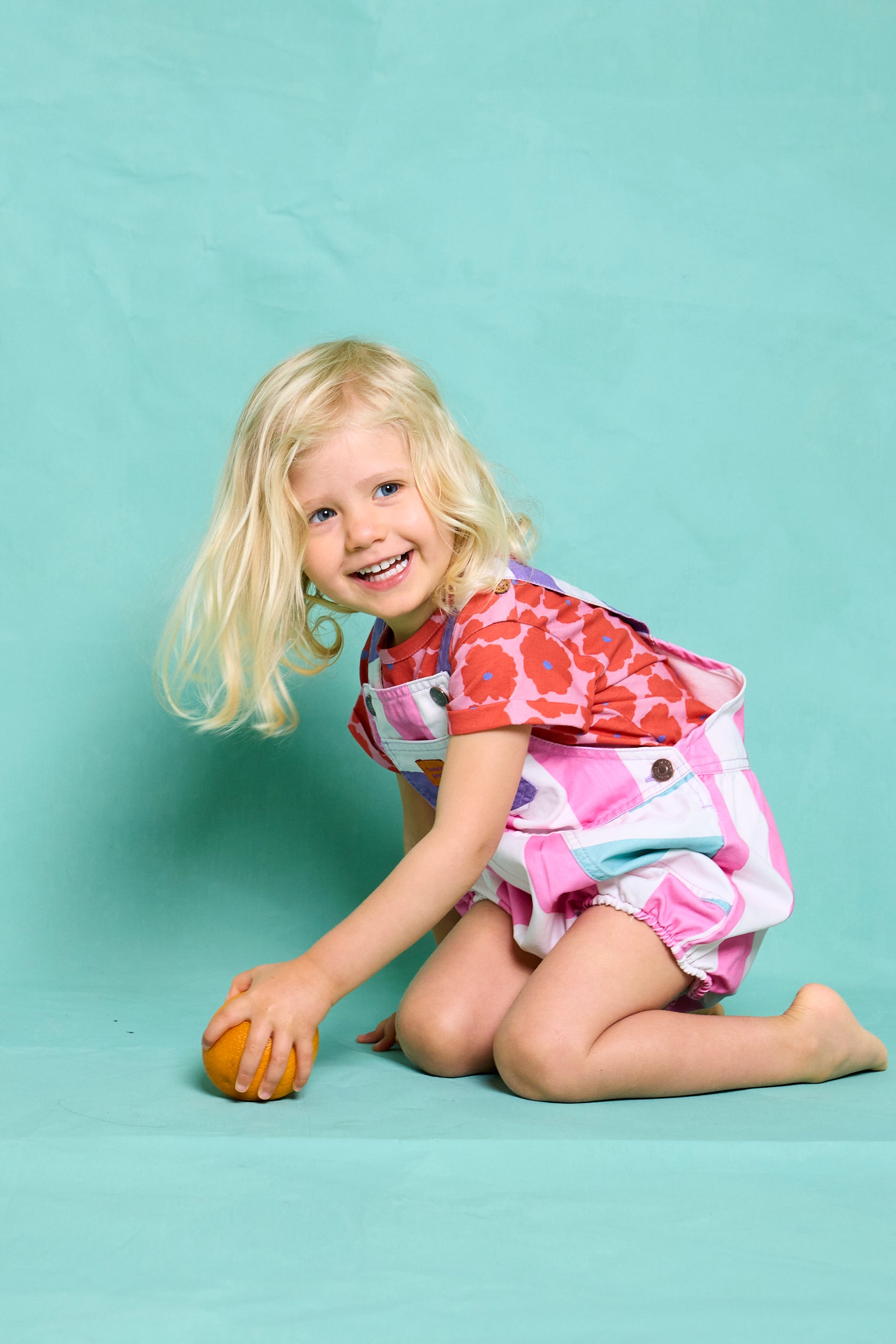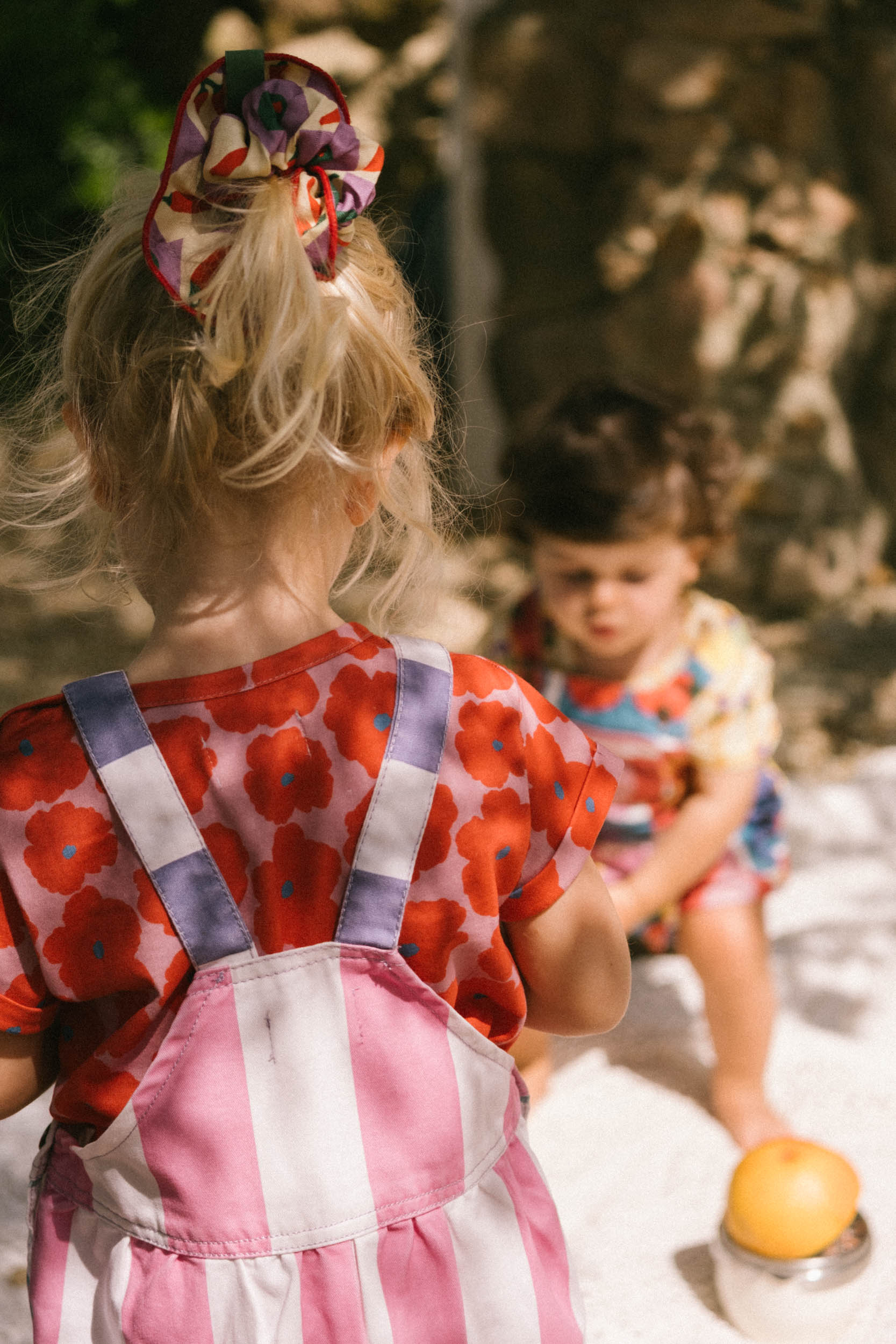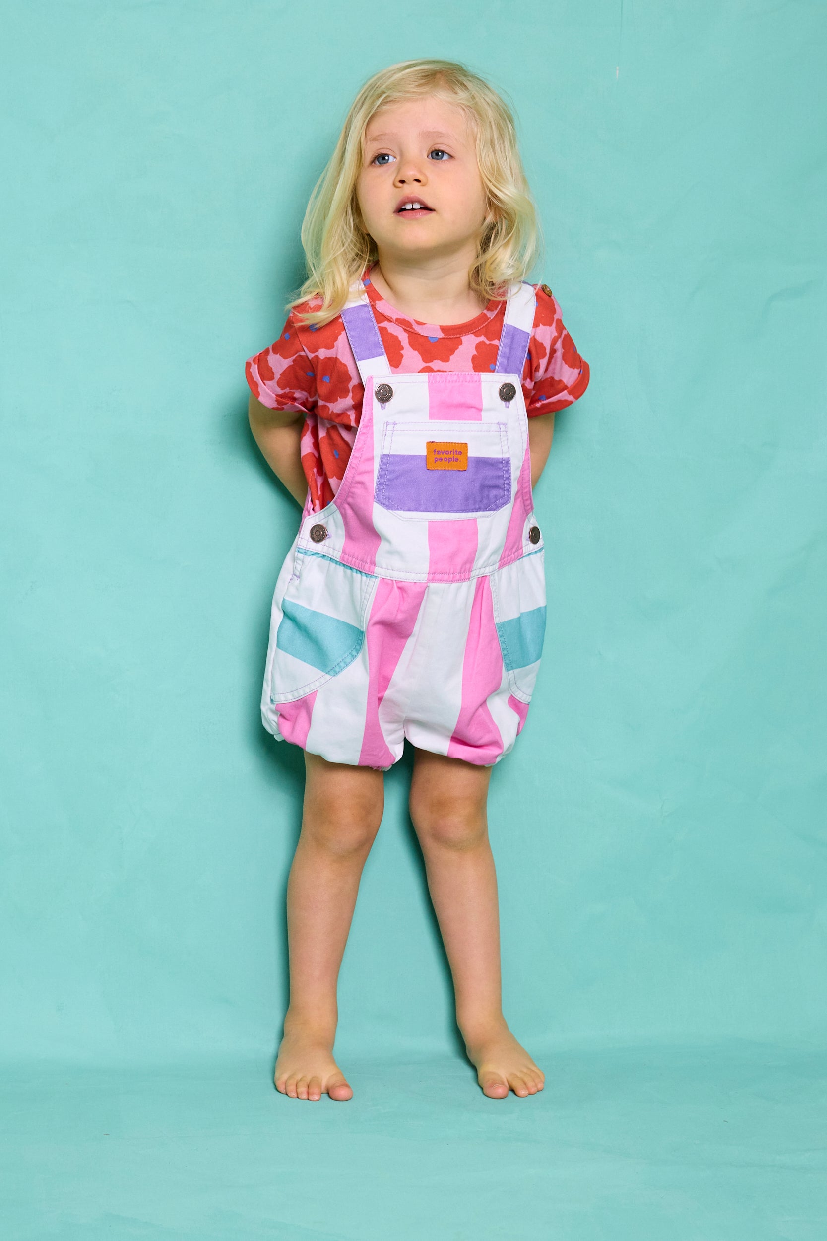Adorable and comfy, this romper with pink, purple, blue and white stripes is designed for your little one’s everyday adventures. It features adjustable straps with button fastening, a logo front pocket, elasticated leg openings, and snap buttons for easy diaper changes. Made in Portugal from 100% cotton.