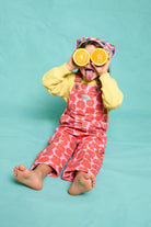 These timeless long overalls in pink with bold red flowers are built for comfort, play, and endless fun. Featuring a straight neckline, adjustable straps with button closures, and front and back pockets for all the little treasures. Made in Portugal from 100% cotton.