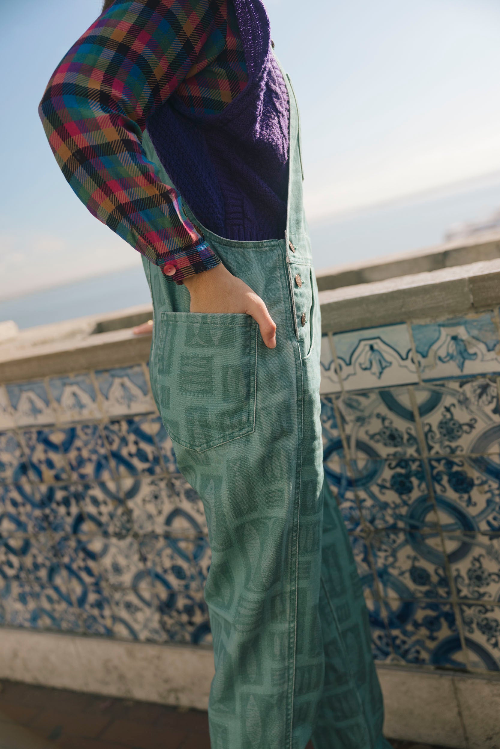 Step into the charm of Portugal with these iconic green long overalls, blending timeless style with local inspiration! Featuring a straight neckline and adjustable straps with classic dungaree closures, these overalls are designed for both comfort and a laid-back coolness. Thoughtful front and back pockets. Crafted in Portugal from 100% cotton, they ensure long-lasting quality and comfort. For best care, wash inside out and avoid mixing with other garments