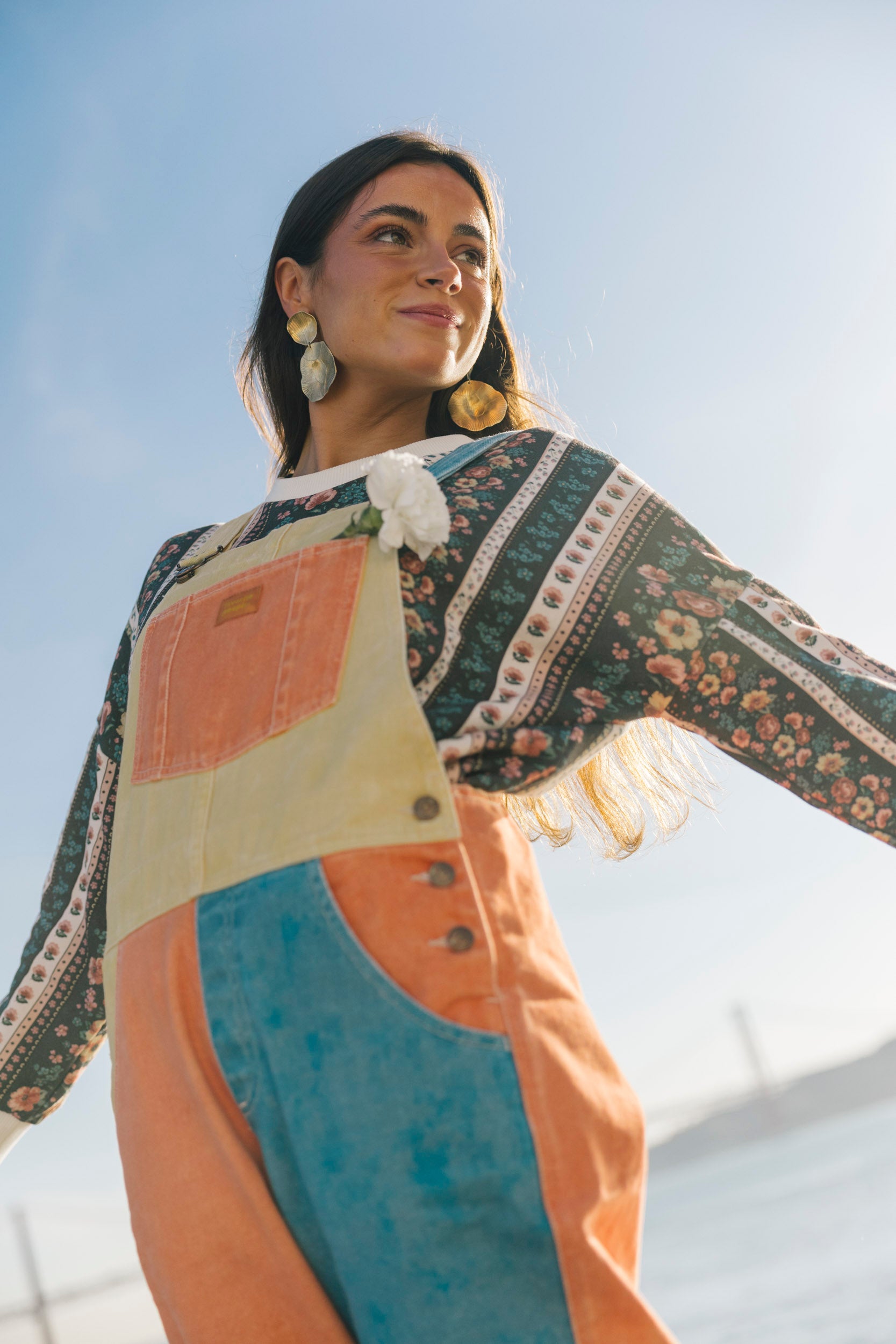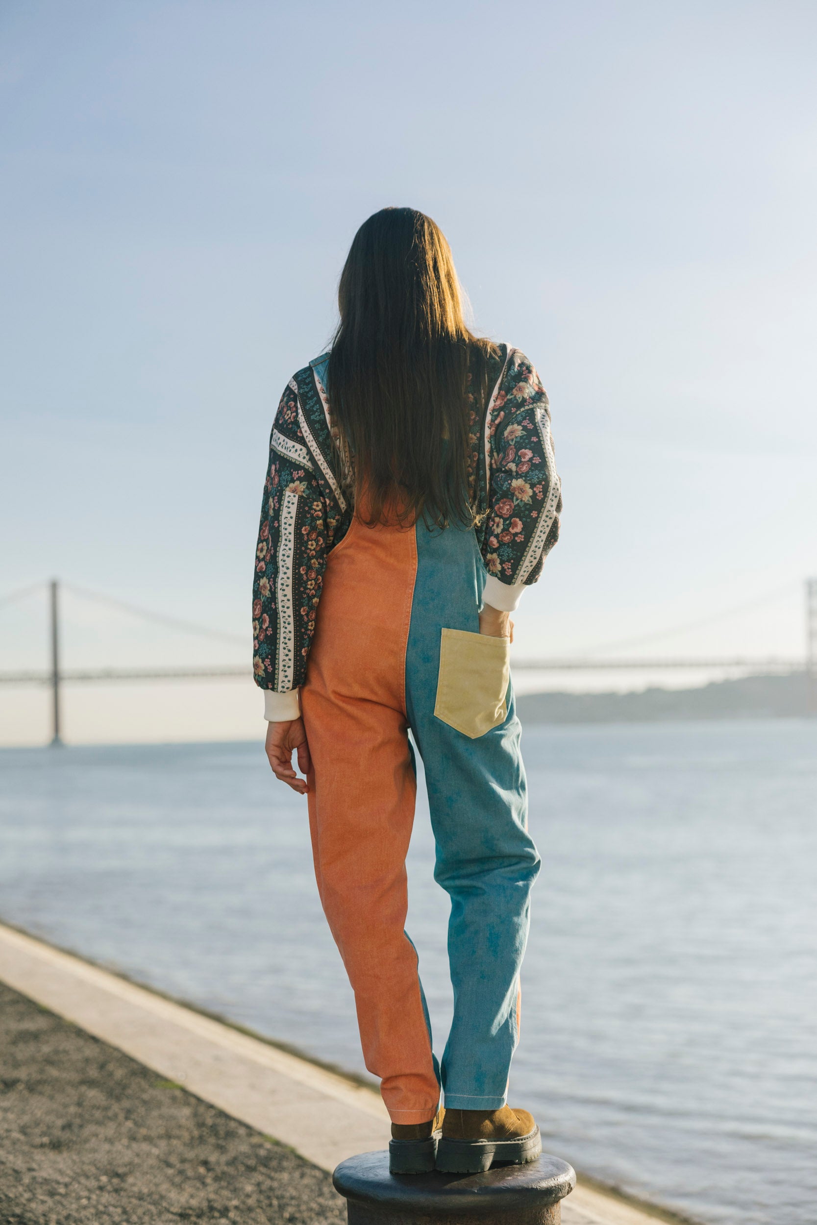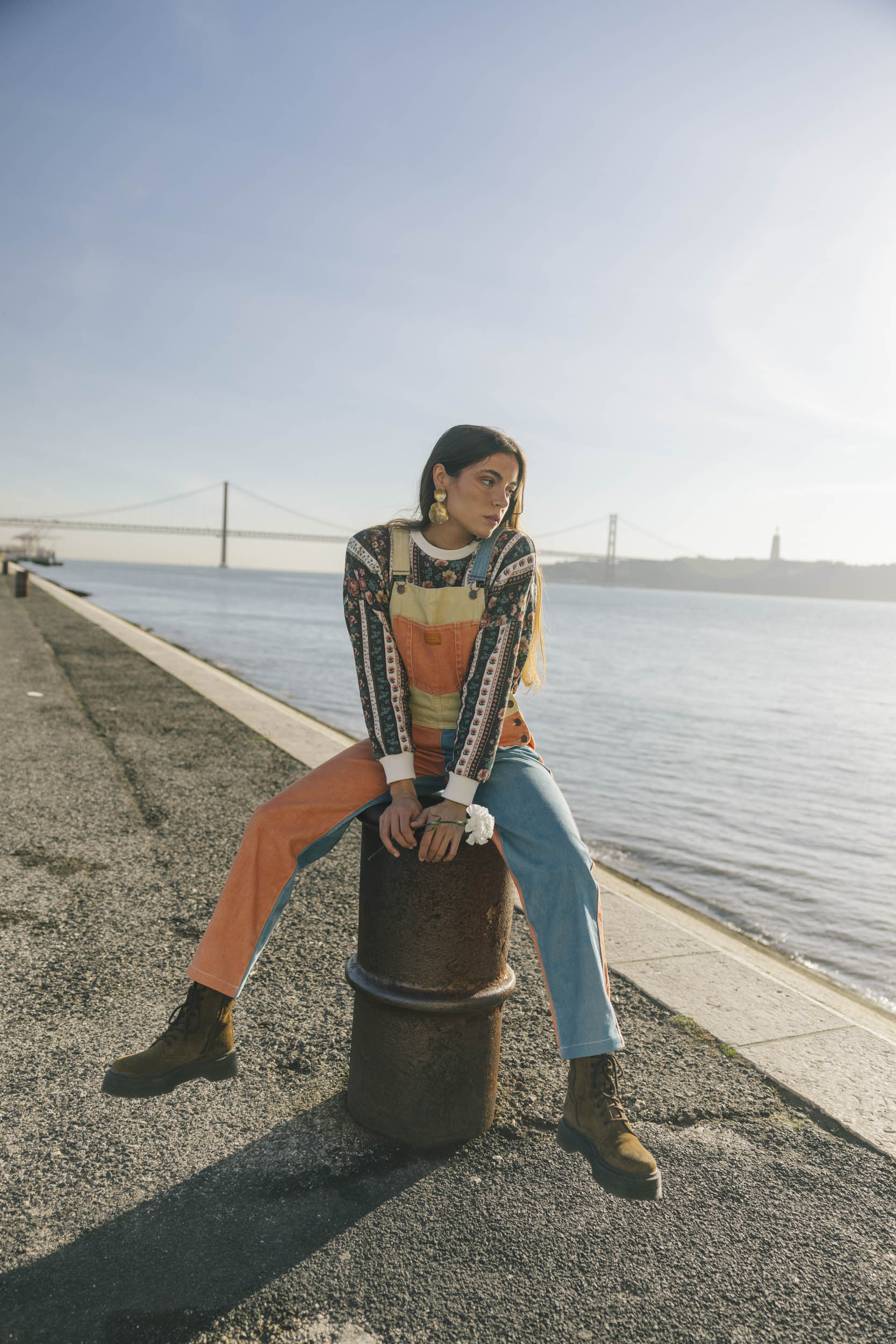 Step into the charm of Portugal with these iconic yellow, orange and blue long overalls, blending timeless style with local inspiration! Featuring a straight neckline and adjustable straps with classic dungaree closures, these overalls are designed for both comfort and a laid-back coolness. Thoughtful front and back pockets. Crafted in Portugal from 100% cotton, they ensure long-lasting quality and comfort. For best care, wash inside out and avoid mixing with other garments.