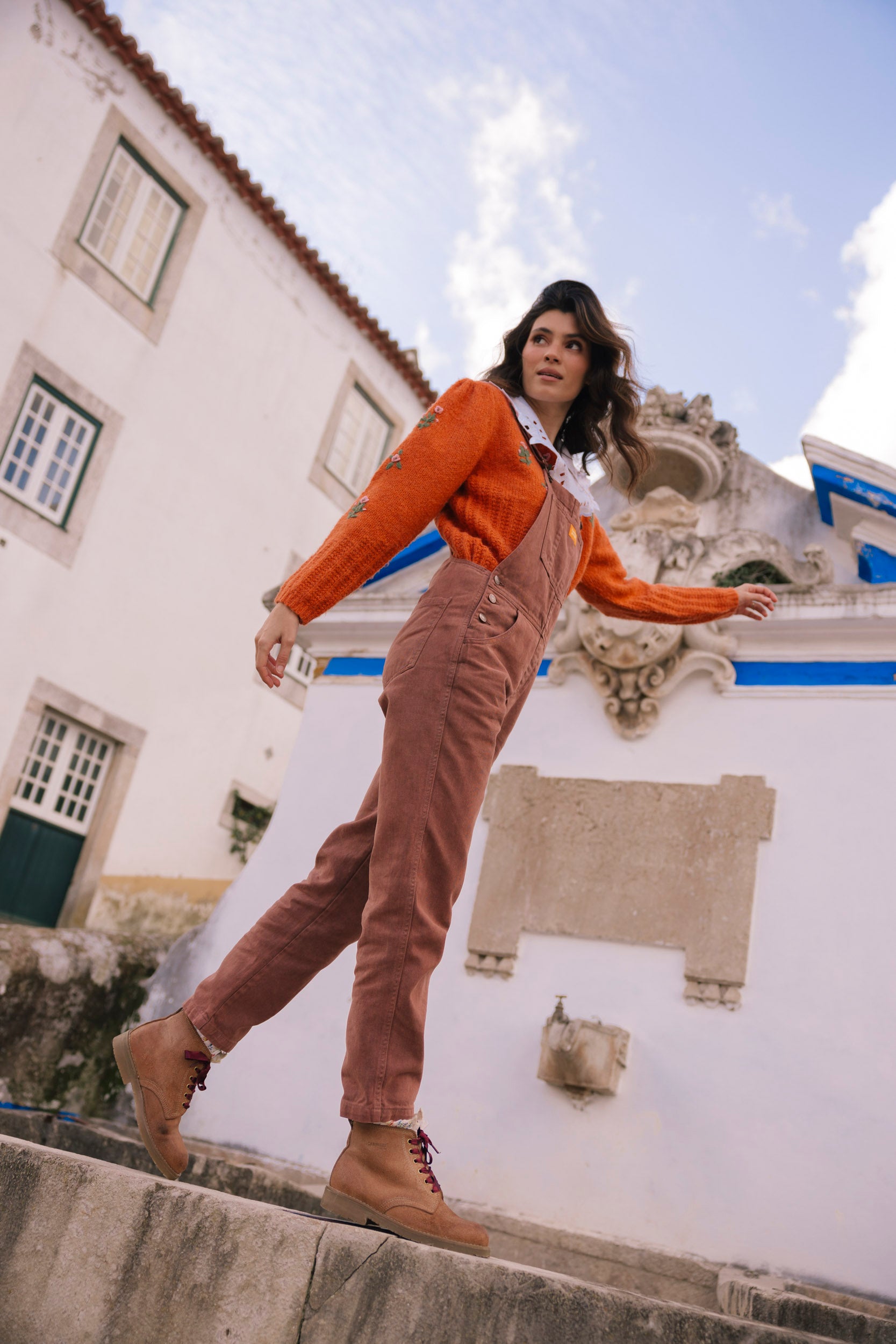 Step into the charm of Portugal with these iconic brown long overalls, blending timeless style with local inspiration! Featuring a straight neckline and adjustable straps with classic dungaree closures, these overalls are designed for both comfort and a laid-back coolness. Thoughtful front and back pockets. Crafted in Portugal from 100% cotton, they ensure long-lasting quality and comfort. For best care, wash inside out and avoid mixing with other garments