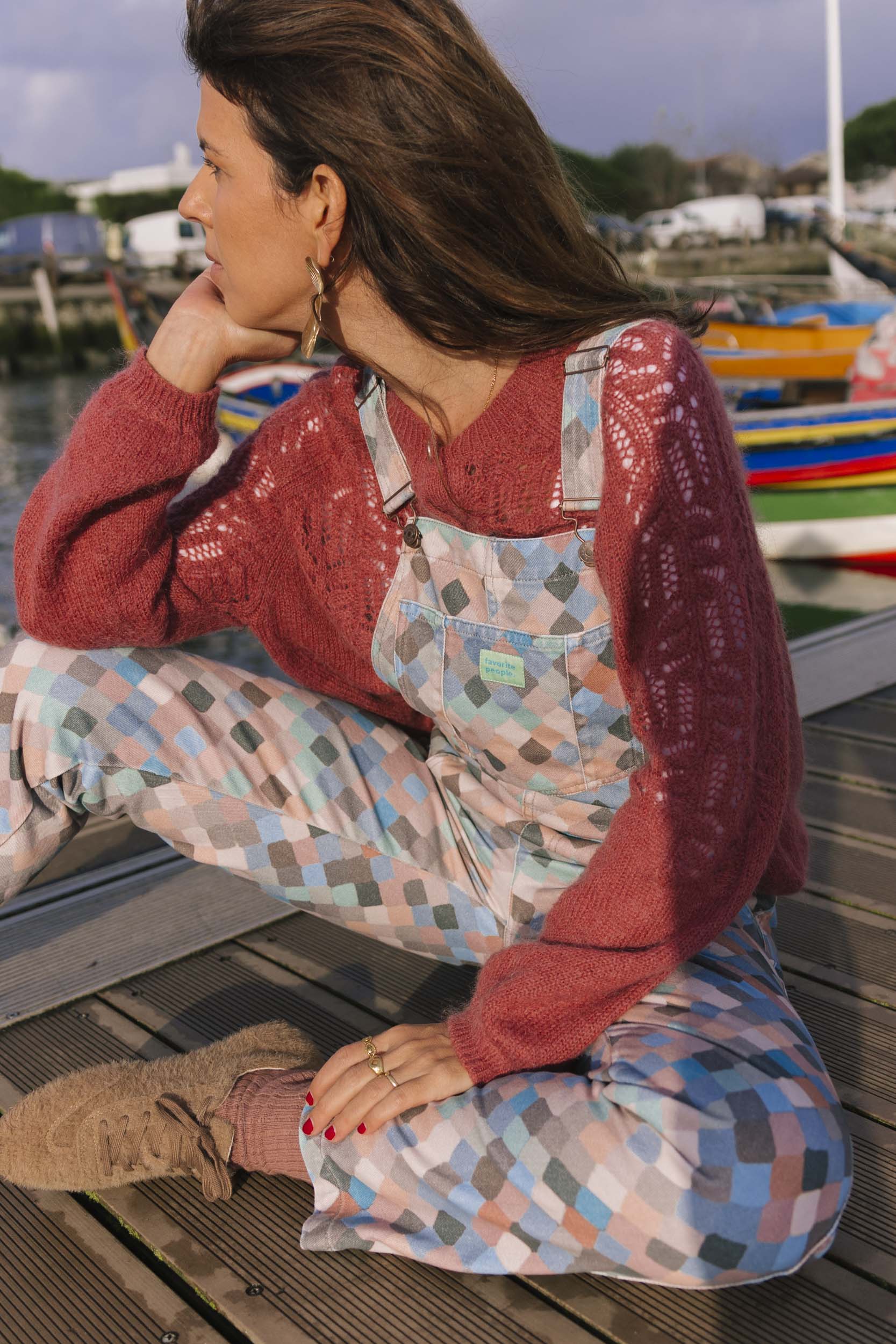 Step into the charm of Portugal with these iconic multicoloured long overalls, blending timeless style with local inspiration! Featuring a straight neckline and adjustable straps with classic dungaree closures, these overalls are designed for both comfort and a laid-back coolness. Thoughtful front and back pockets. Crafted in Portugal from 100% cotton, they ensure long-lasting quality and comfort. For best care, wash inside out and avoid mixing with other garments