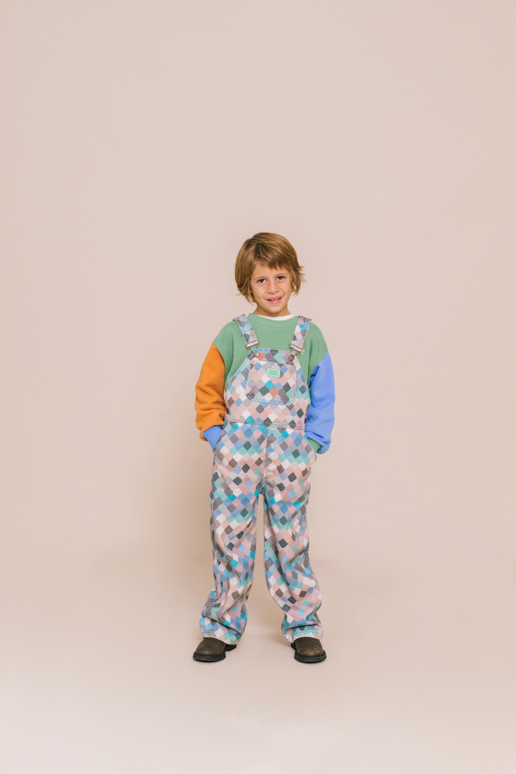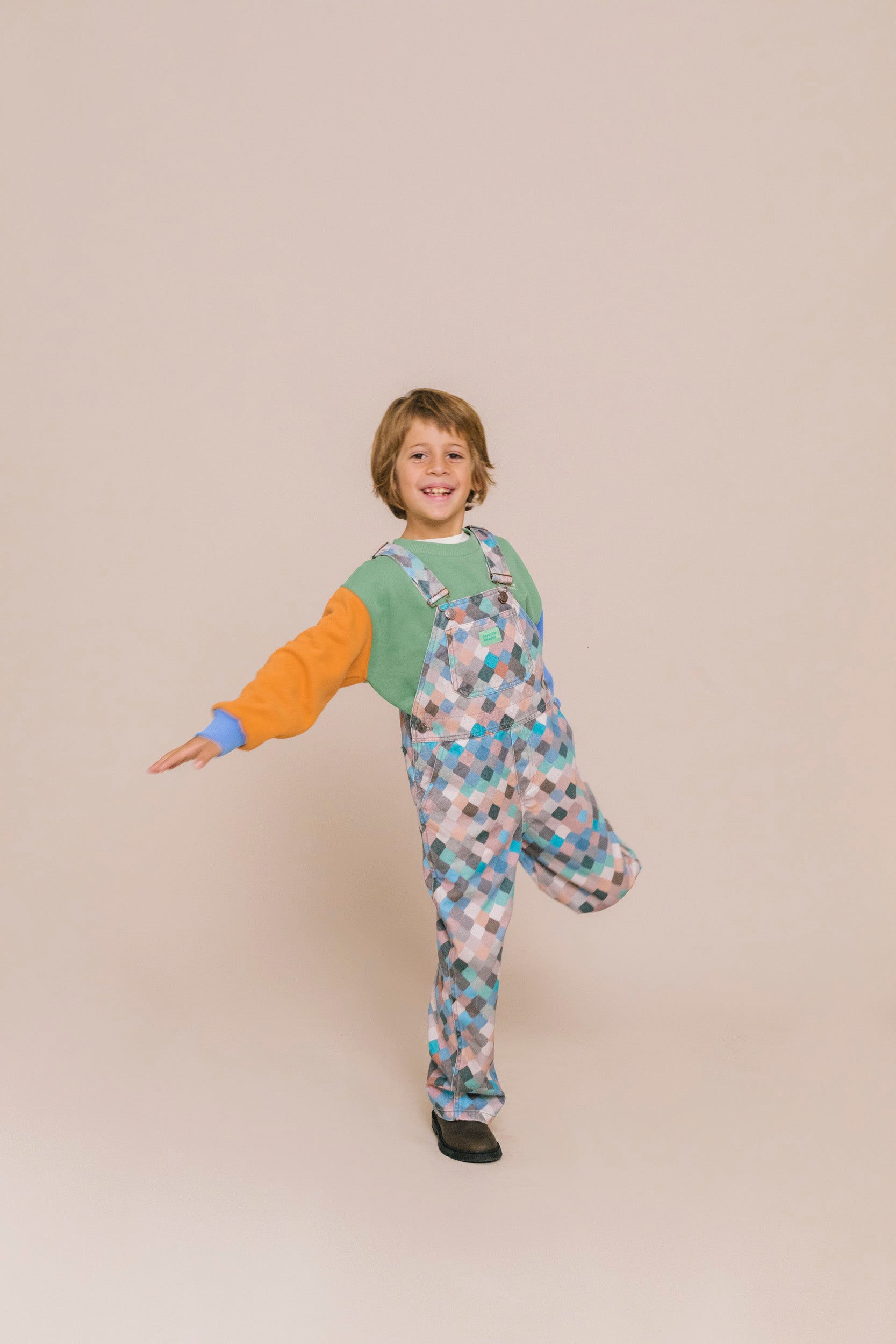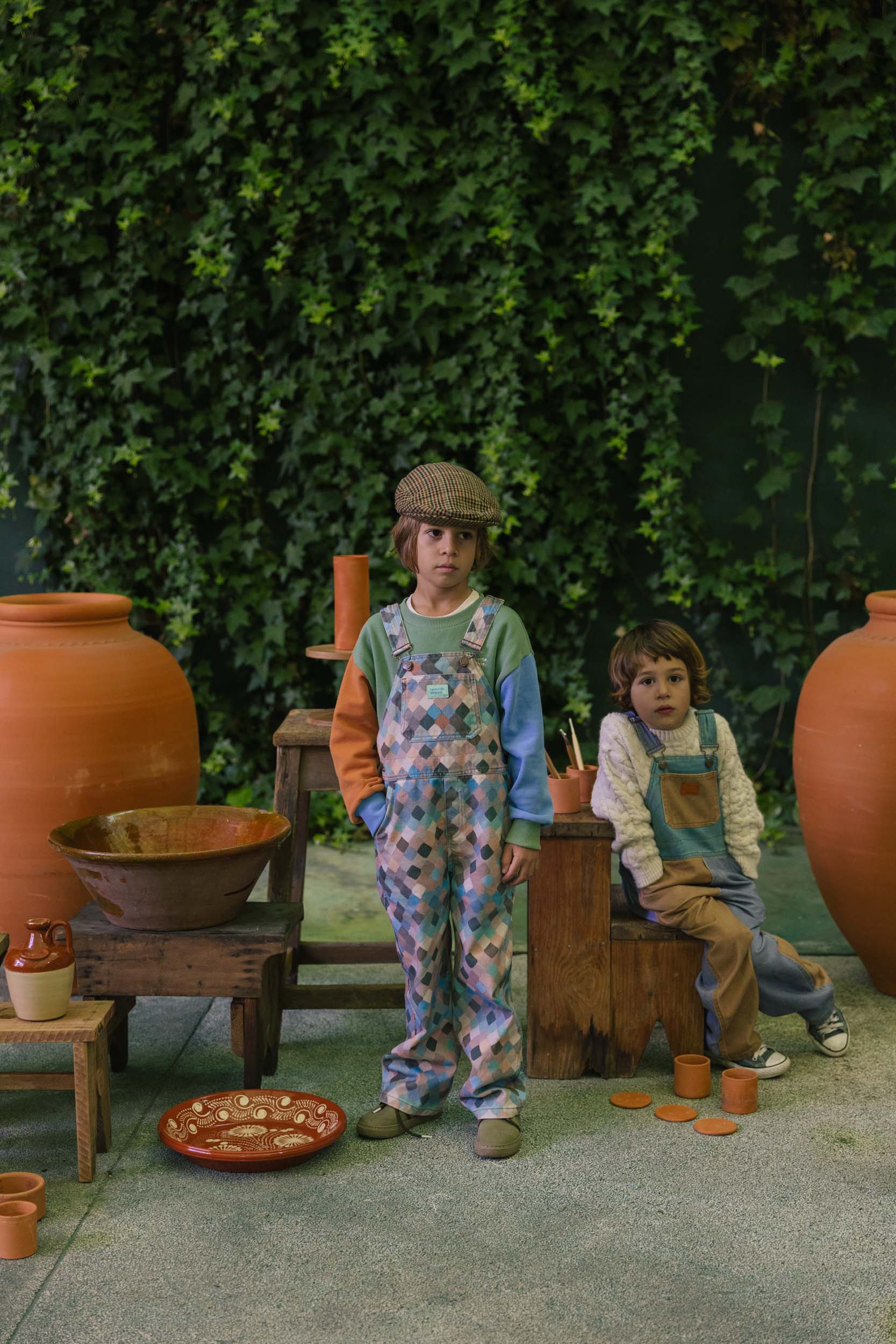 Step into the charm of Portugal with these iconic multicoloured long overalls, blending timeless style with local inspiration! Featuring a straight neckline and adjustable straps with classic dungaree closures, these overalls are designed for both comfort and a laid-back coolness. Thoughtful front and back pockets provide the perfect spot for little treasures or snacks. Crafted in Portugal from 100% cotton, they ensure long-lasting quality and comfort. For best care, wash inside out and avoid mixing with other garments