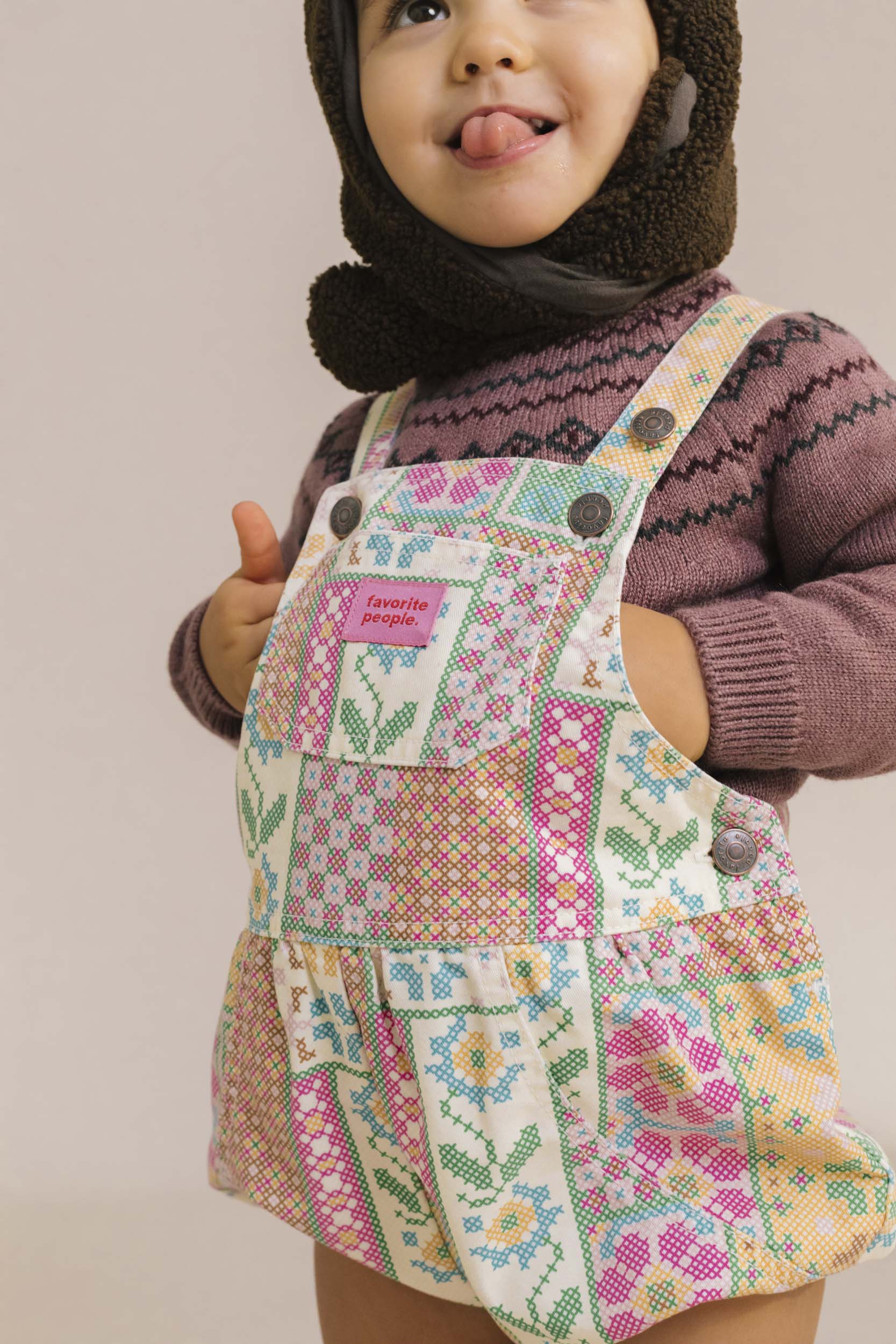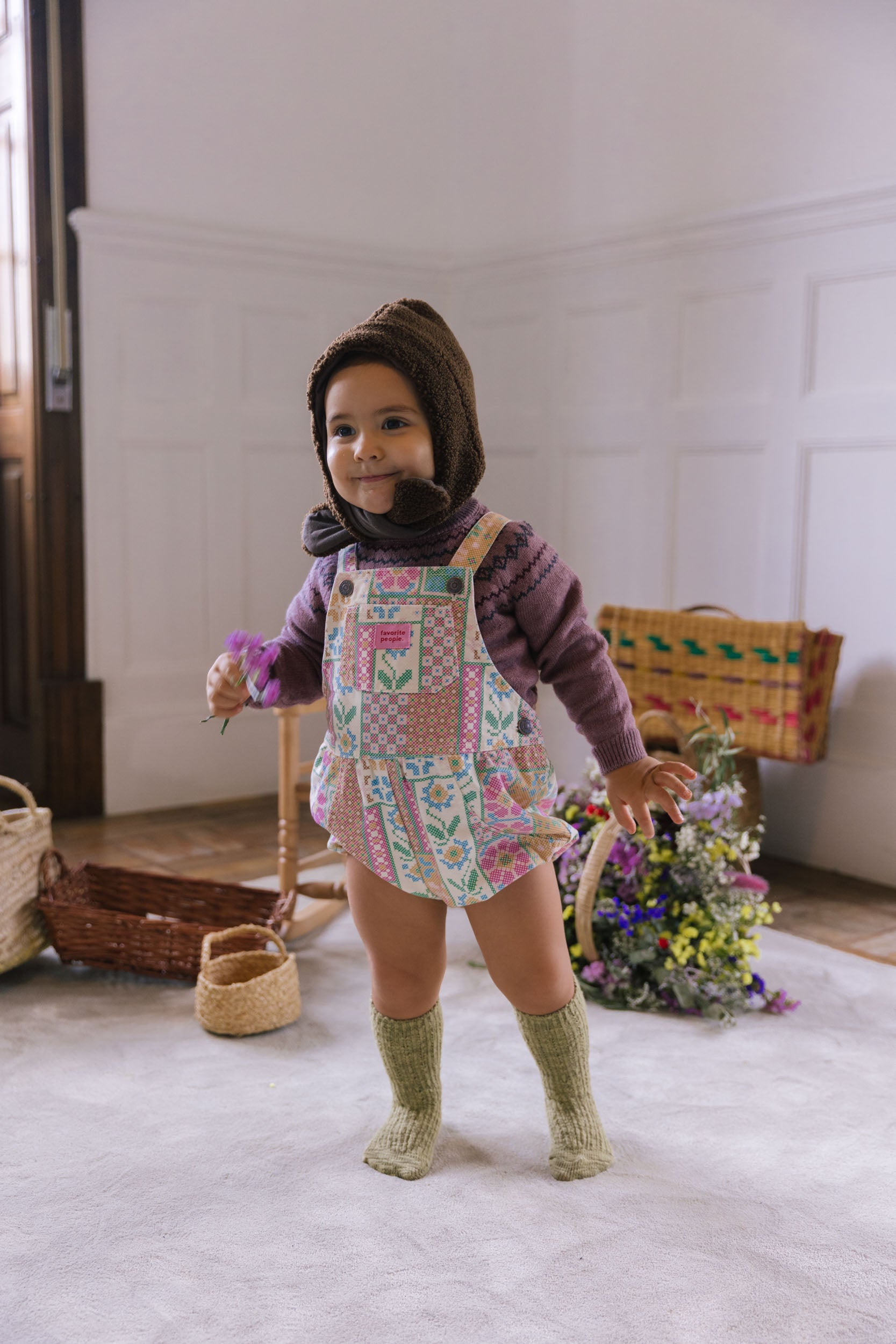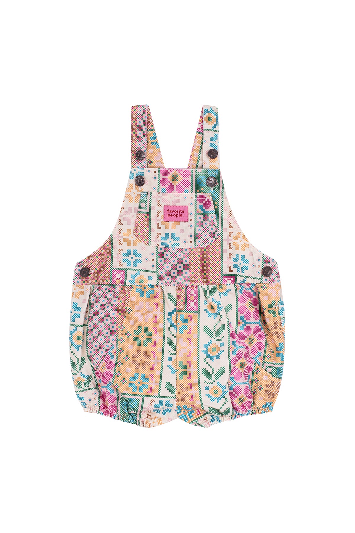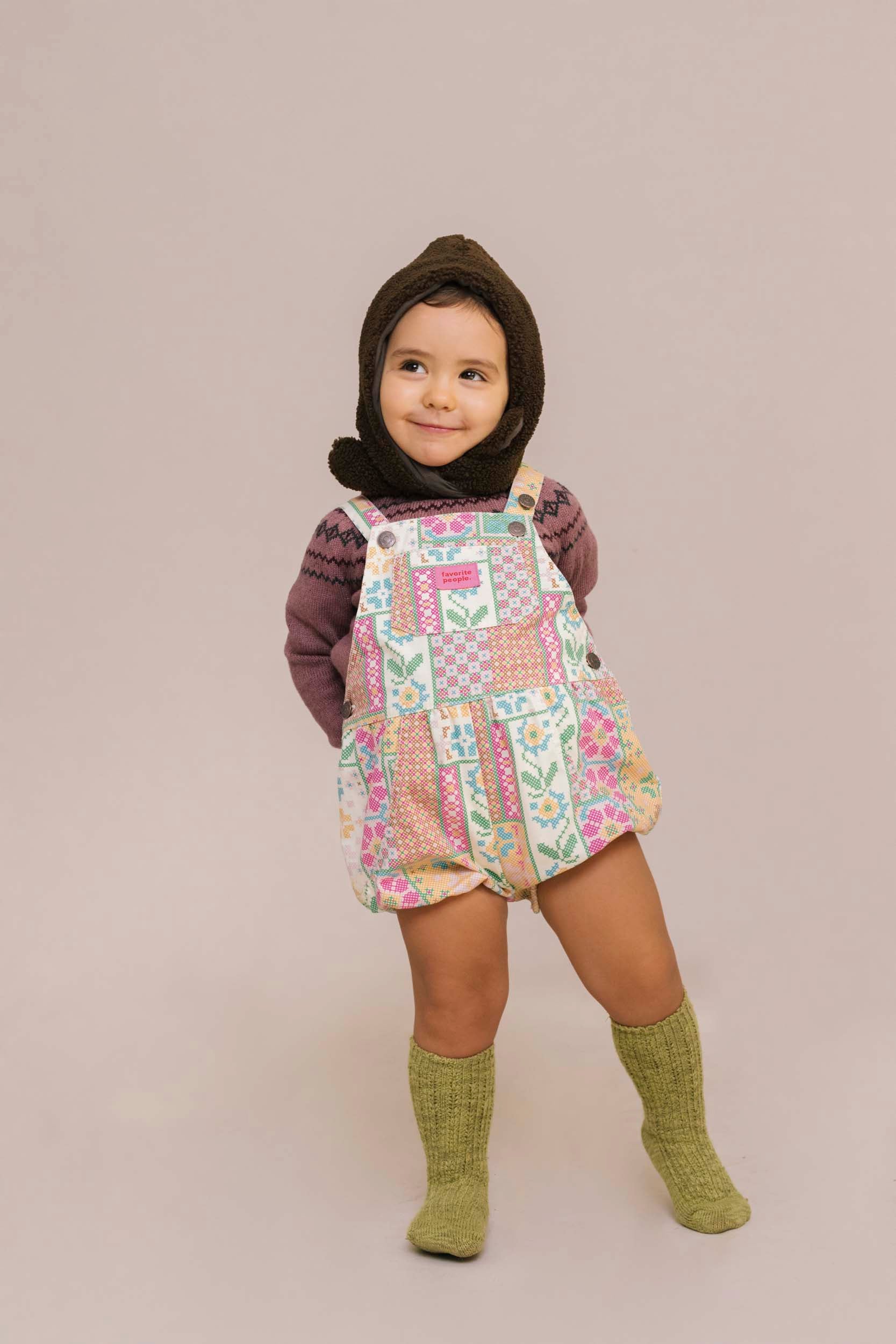 Adorable y funcional, este mono multicolor de algodón 100% cuenta con tirantes ajustables con botones, bolsillo delantero con nuestro logo, muslos elásticos para mayor comodidad y cierres a presión para facilitar el cambio de pañal. Orgullosamente hecho en Portugal. Lavar del revés y por separado para un mejor cuidado. ¡Perfecto para tu bebé favorito!