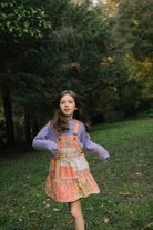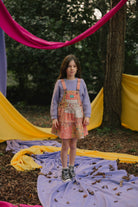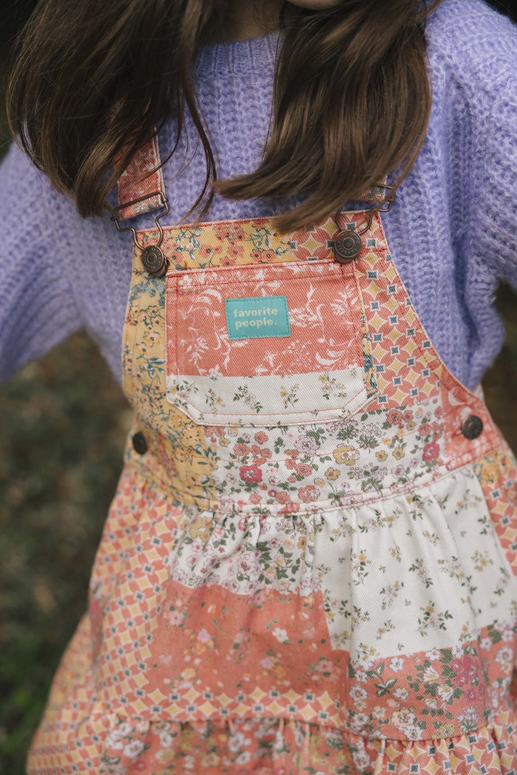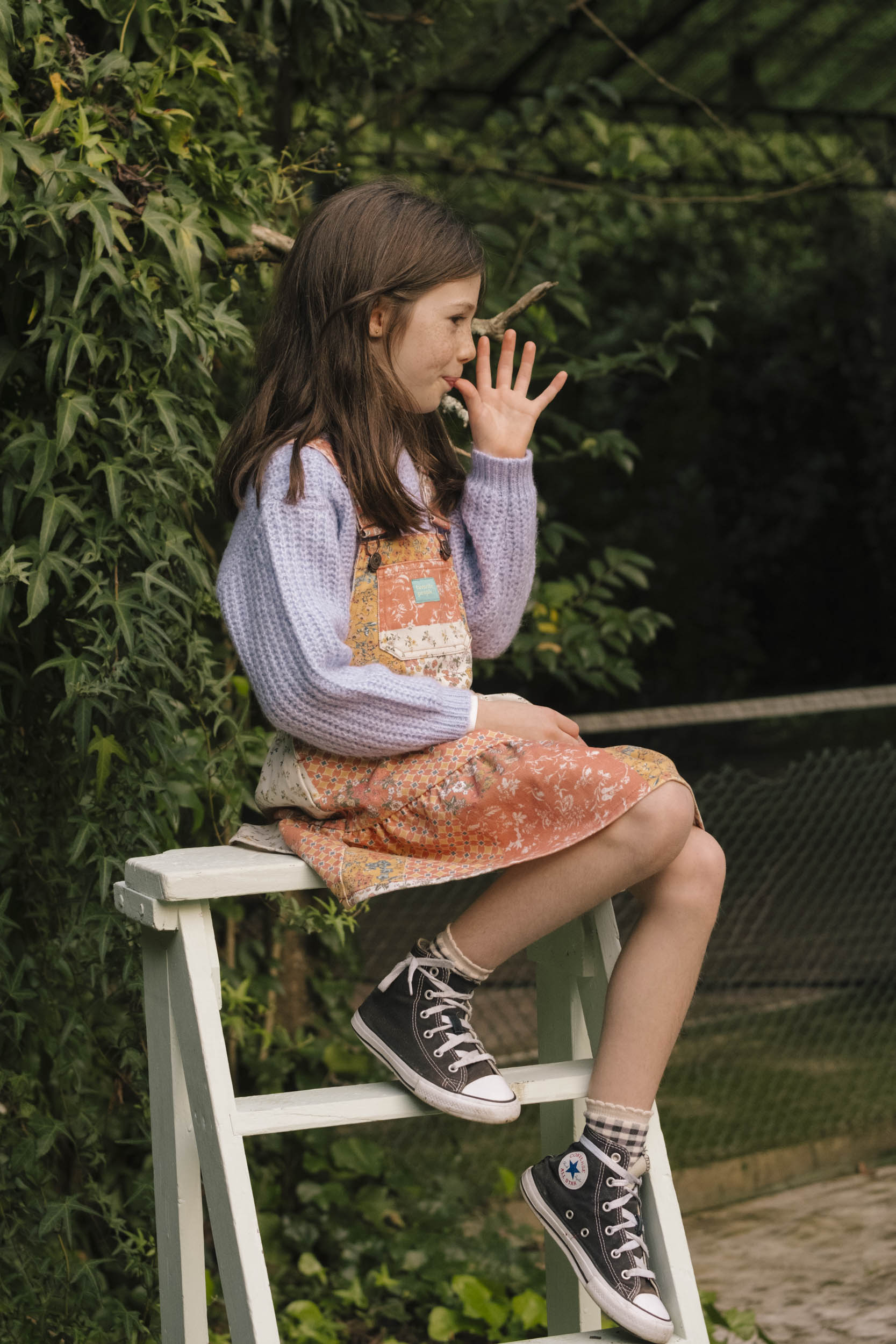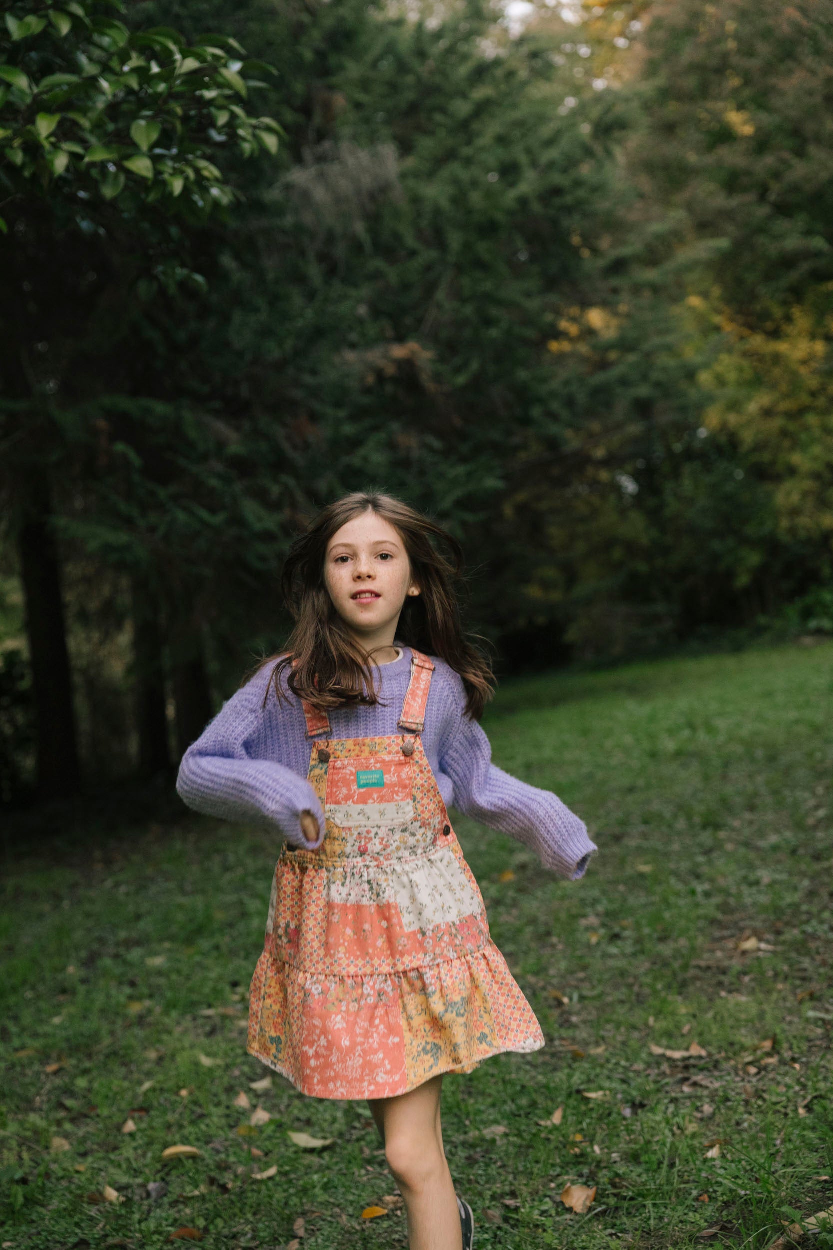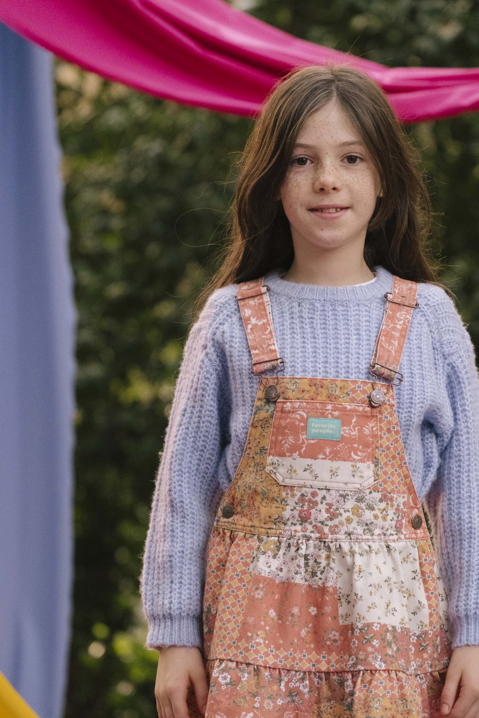 Falda-peto en naranja, blanco y amarillo, con escote recto y tirantes ajustables con cierres clásicos de peto. Diseñada con bolsillos combinados, esta prenda también destaca por su falda de tres capas superpuestas, que aporta movimiento y un toque especial. Confeccionada en Portugal con algodón 100%, garantiza calidad y comodidad duraderas. Para un mejor cuidado, lavar del revés y evitar mezclar con otras prendas.