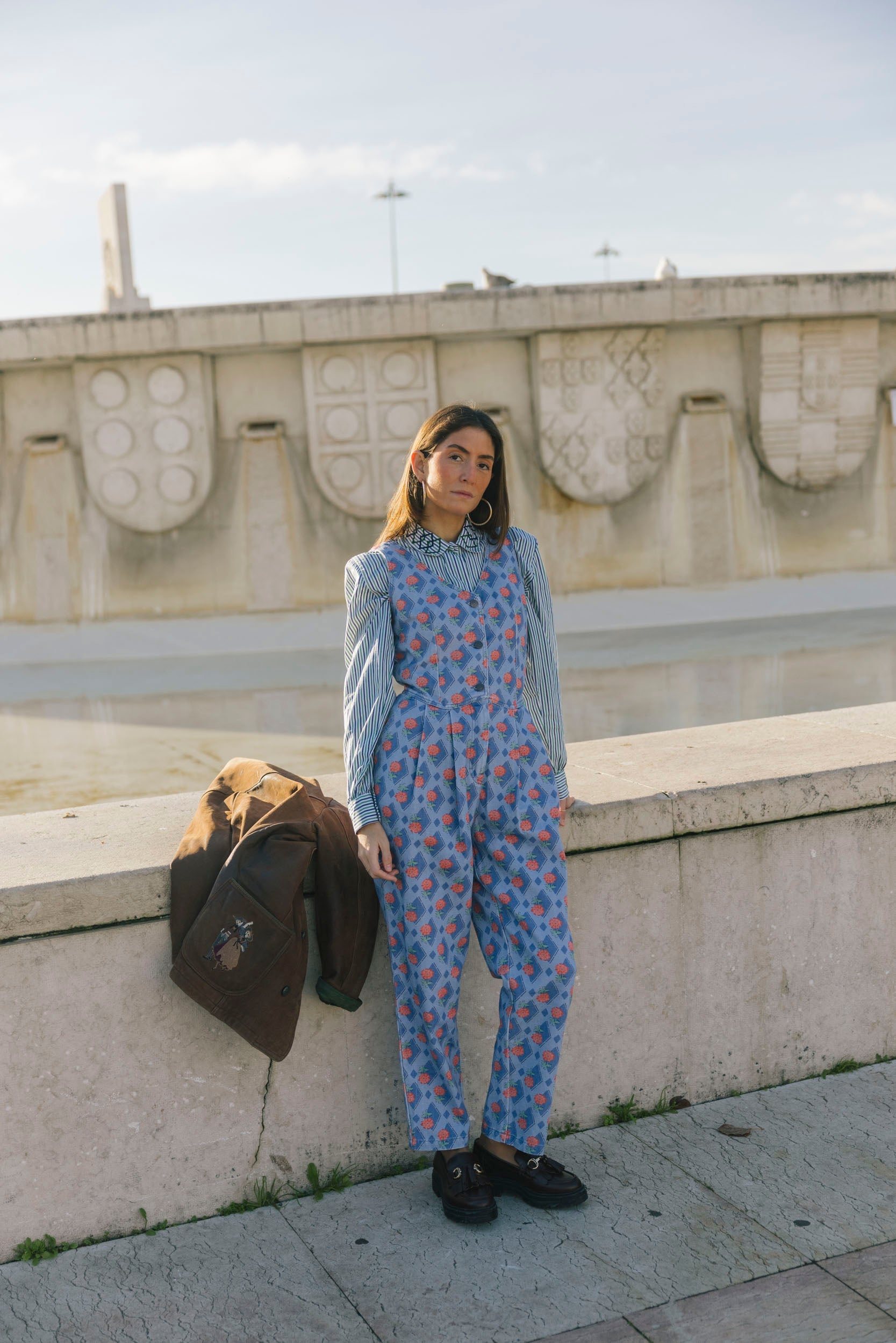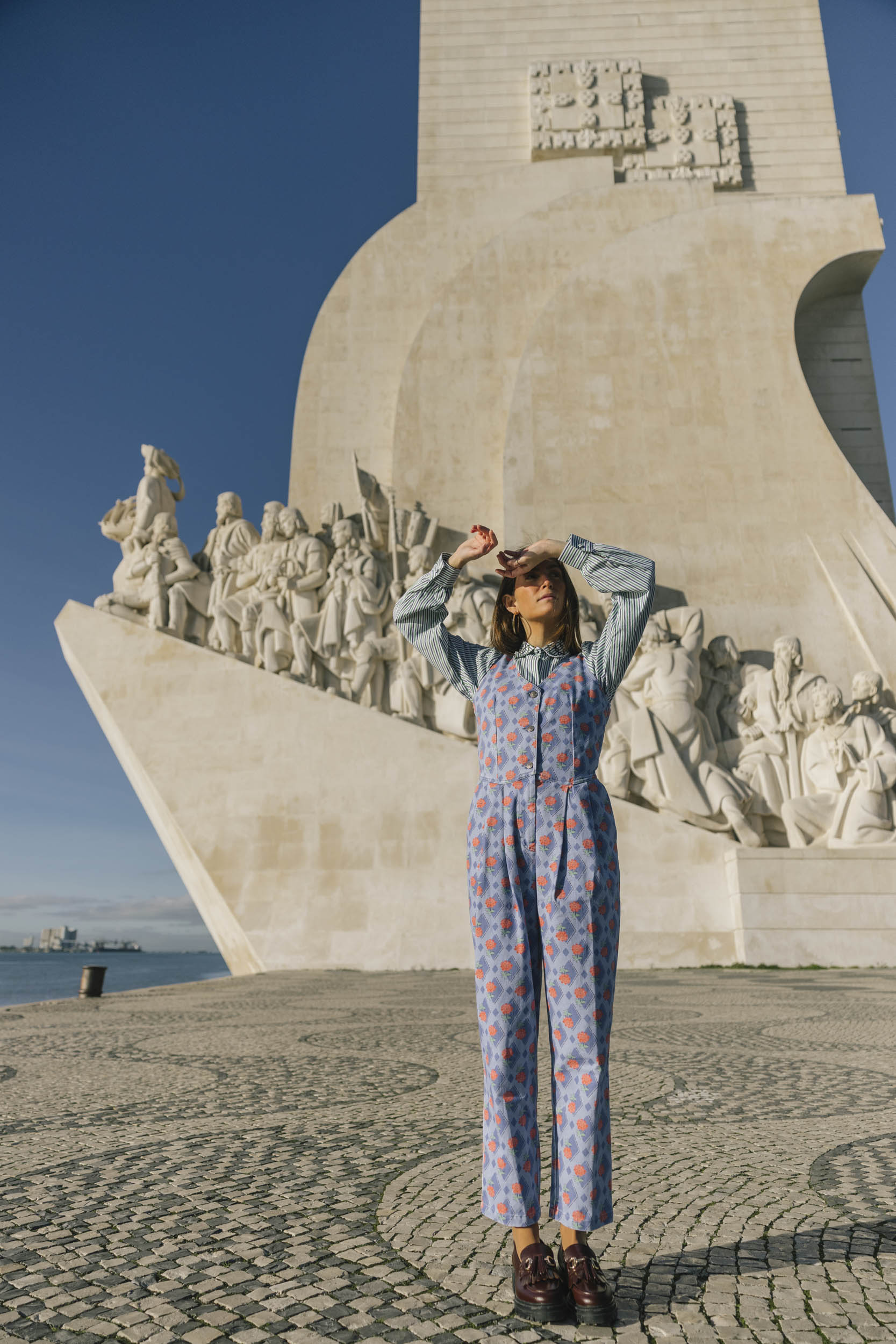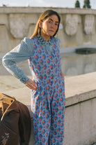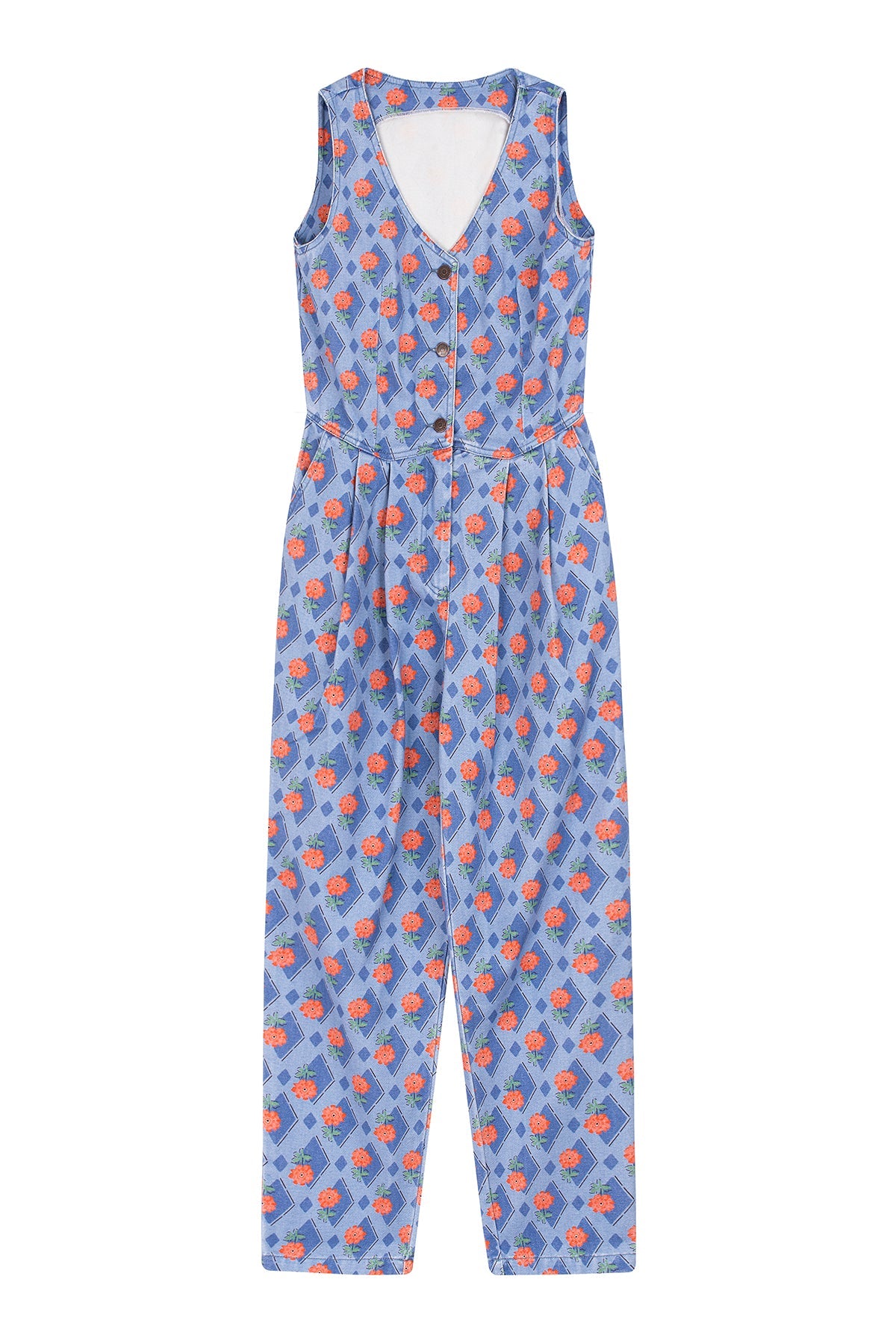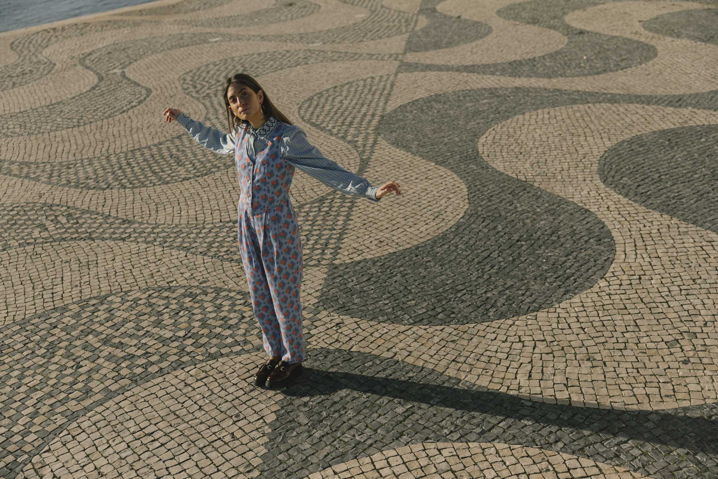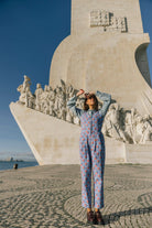 This blue jumpsuit is the ultimate blend of cool and comfy, perfect for effortless style! With a vest-inspired top, a sharp V-neckline, and three buttons down the front, it’s got that laid-back, chic vibe nailed. The baggy, relaxed pants give it a playful edge, making it the go-to piece for easy, everyday looks. Crafted in Portugal from 100% cotton. For best care, wash inside out and avoid mixing with other garments.