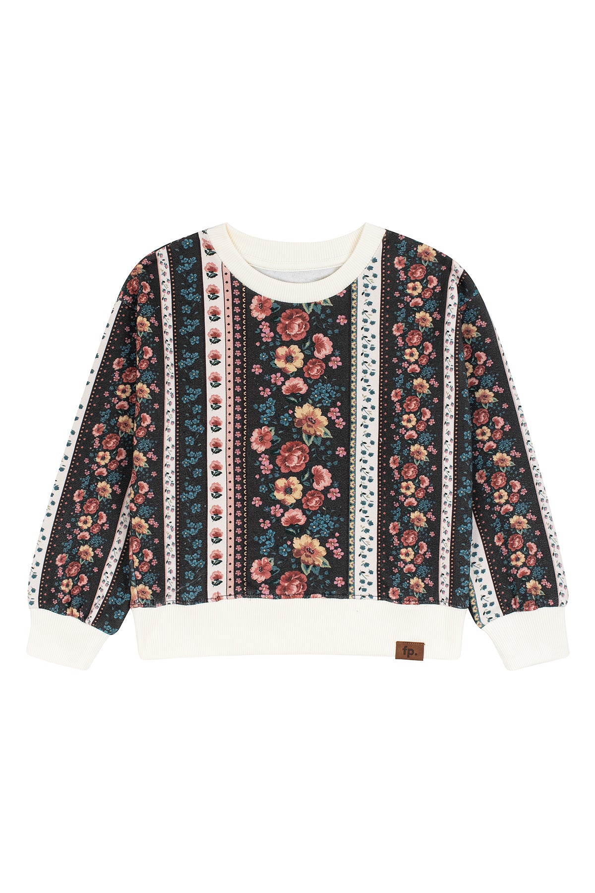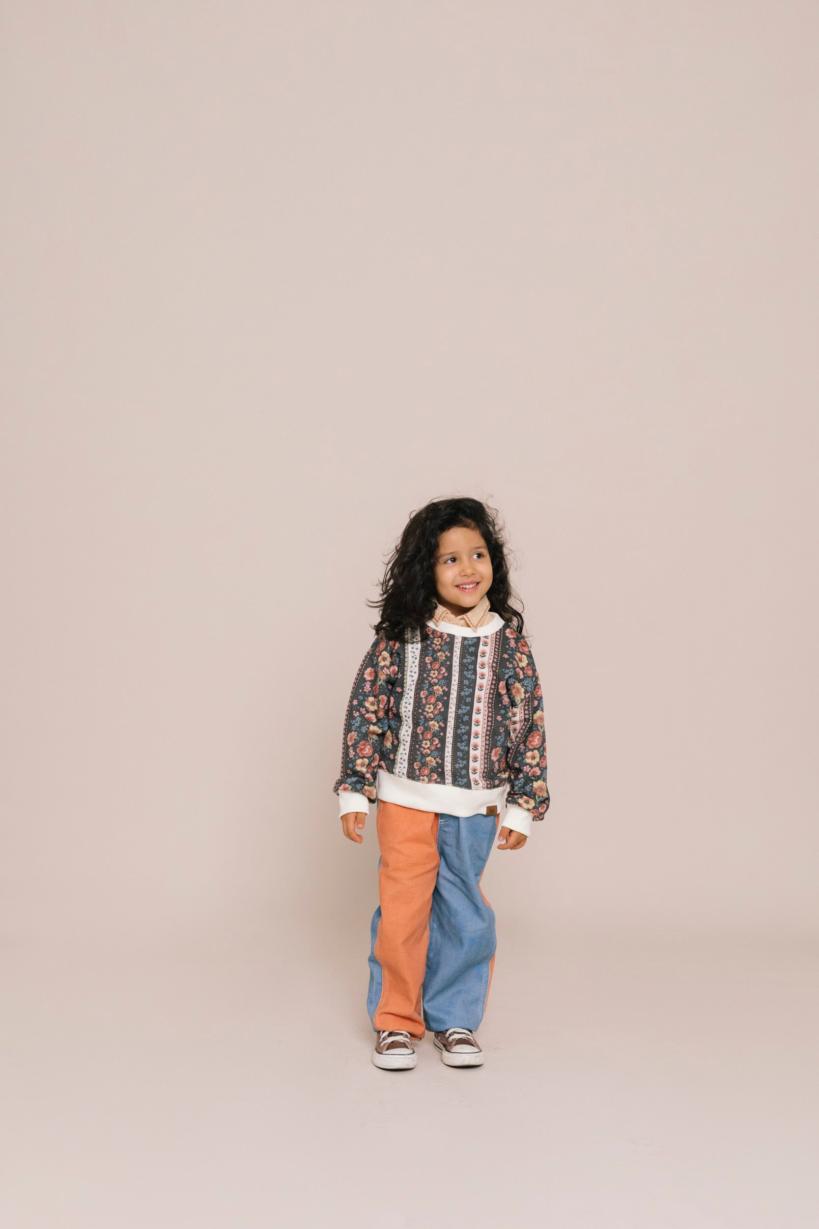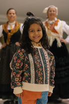 This sweater is made in Portugal from 100% cotton, features a carded interior with soft fleece fabric for added warmth and comfort. Showcasing a beautiful Portuguese chita pattern in rose, black, and dark green tones. Designed with a relaxed fit, ribbed cuff, and a crew neckline, it’s perfect for any adventure and easy to pair with the coolest overalls in the world. For best care, wash inside out and avoid mixing with other garments.