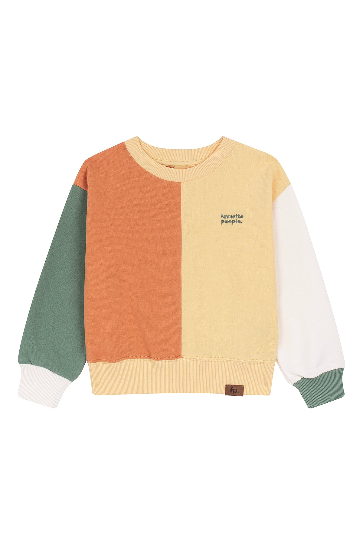 This color-block sweater is made in Portugal from 100% premium cotton, features a carded interior with soft fleece fabric for added warmth and comfort. Offering softness, durability, and everyday ease, it’s designed with a relaxed fit, ribbed cuff, and a crew neckline, making it as stylish as it is practical—perfect for any adventure. Easy to pair with the coolest overalls in the world, it’s a versatile addition to any wardrobe. For best care, wash inside out and avoid mixing with other garments.