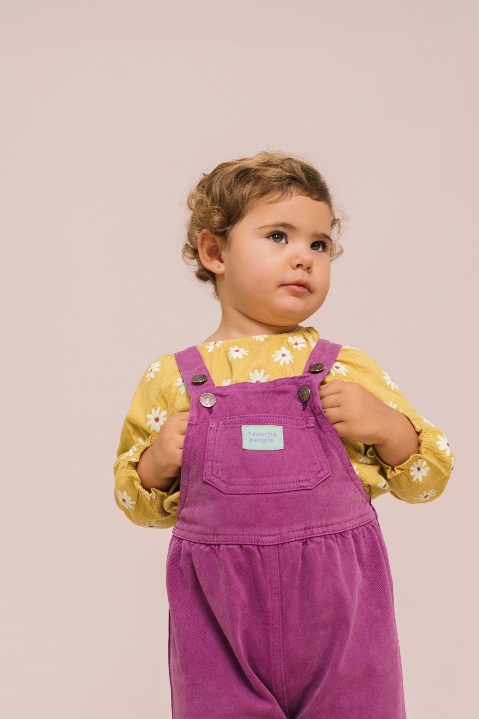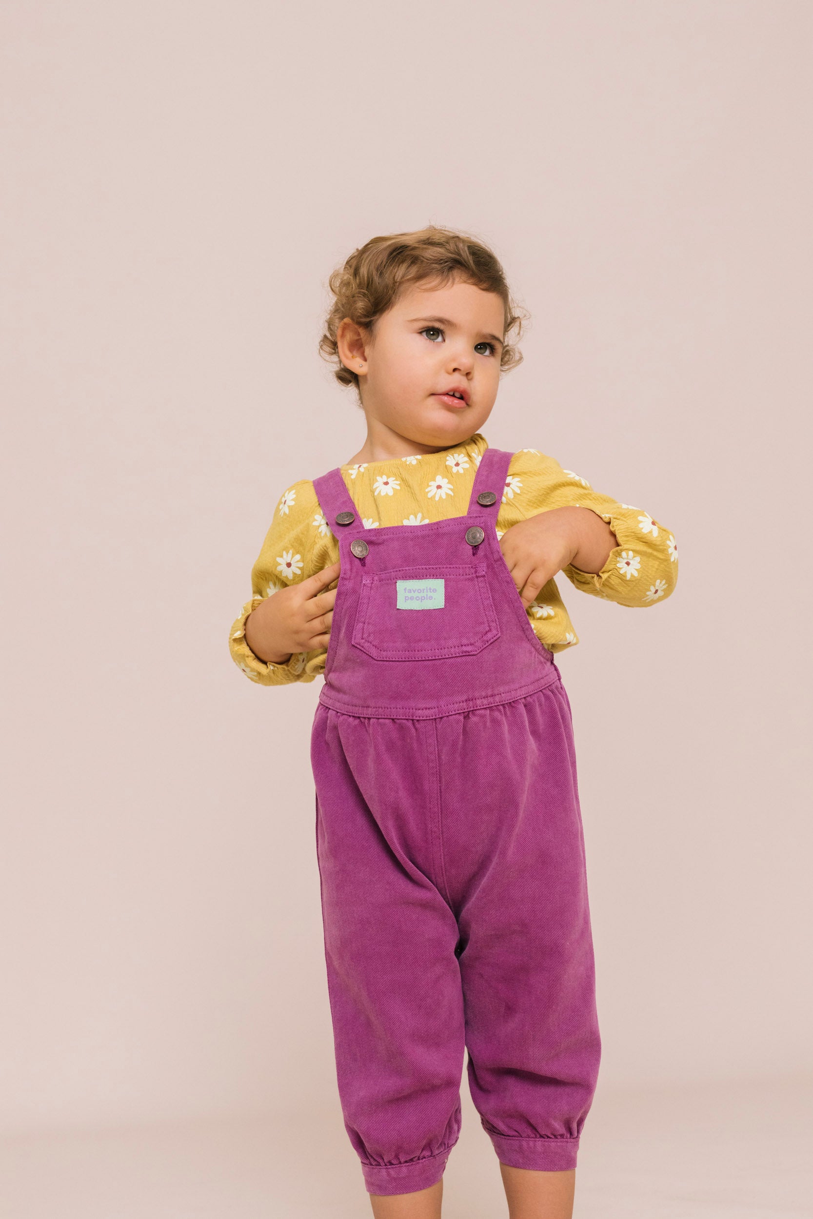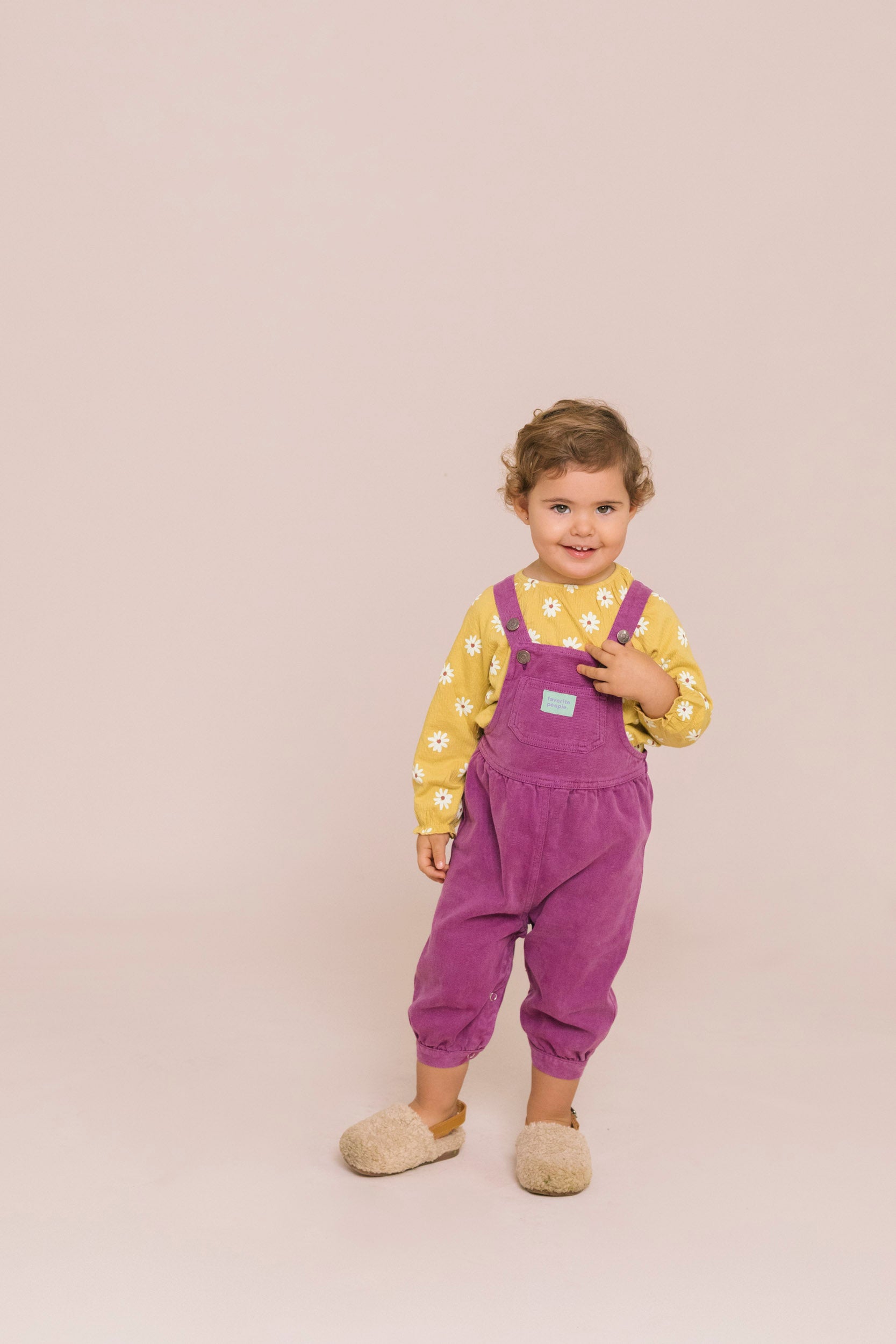 Adorable and functional, this 100% cotton purple baby overalls features adjustable straps with buttons, a front pocket with our logo and snap buttons for easy diaper changes. Proudly made in Portugal. Wash inside out and separately for best care. Perfect for your favorite baby!