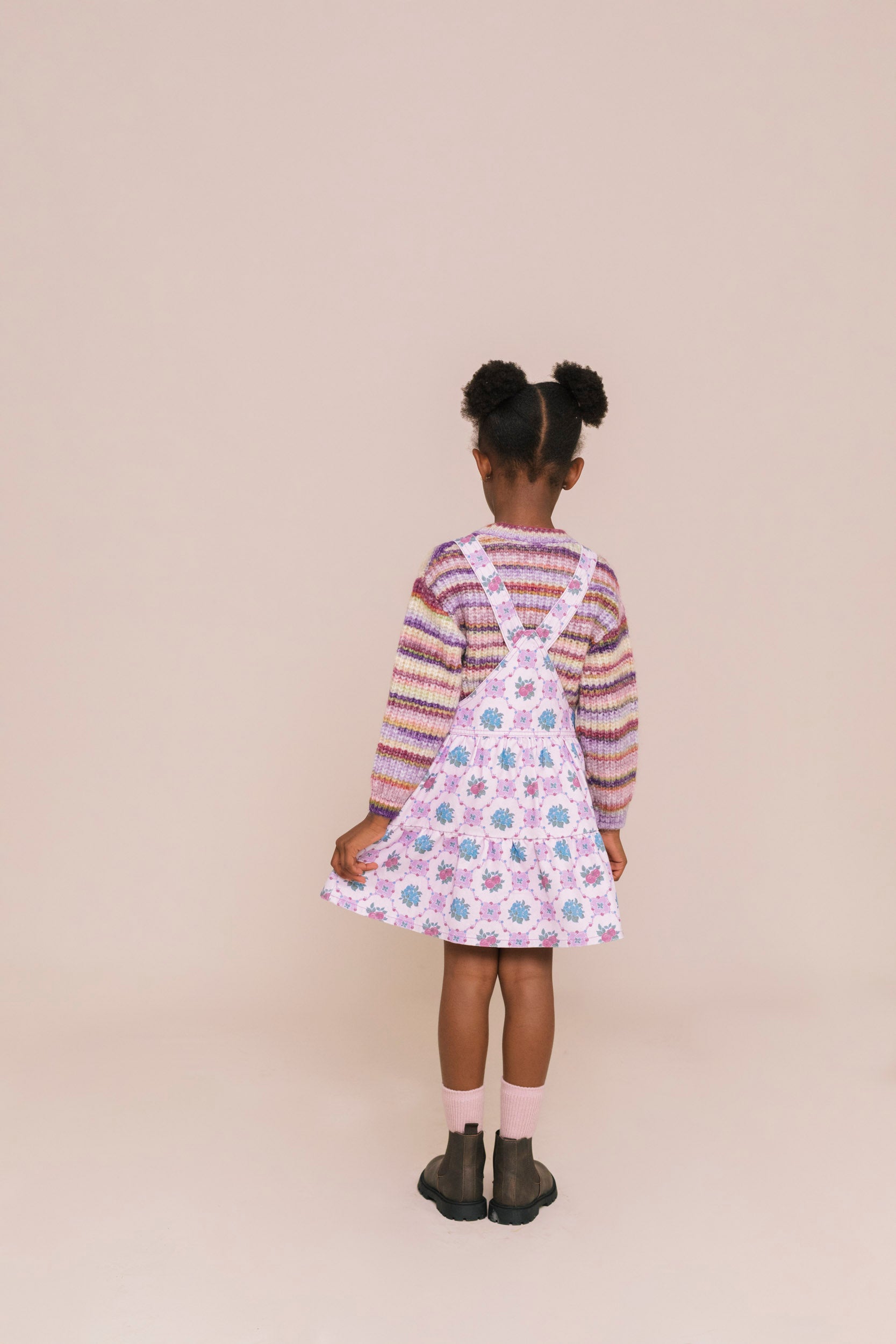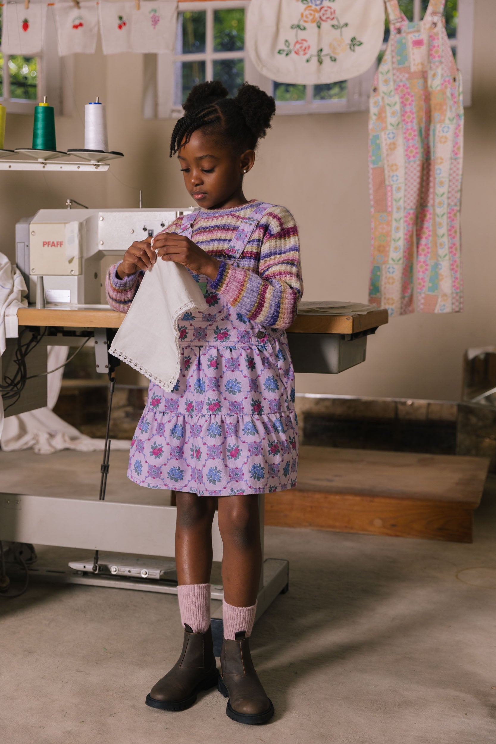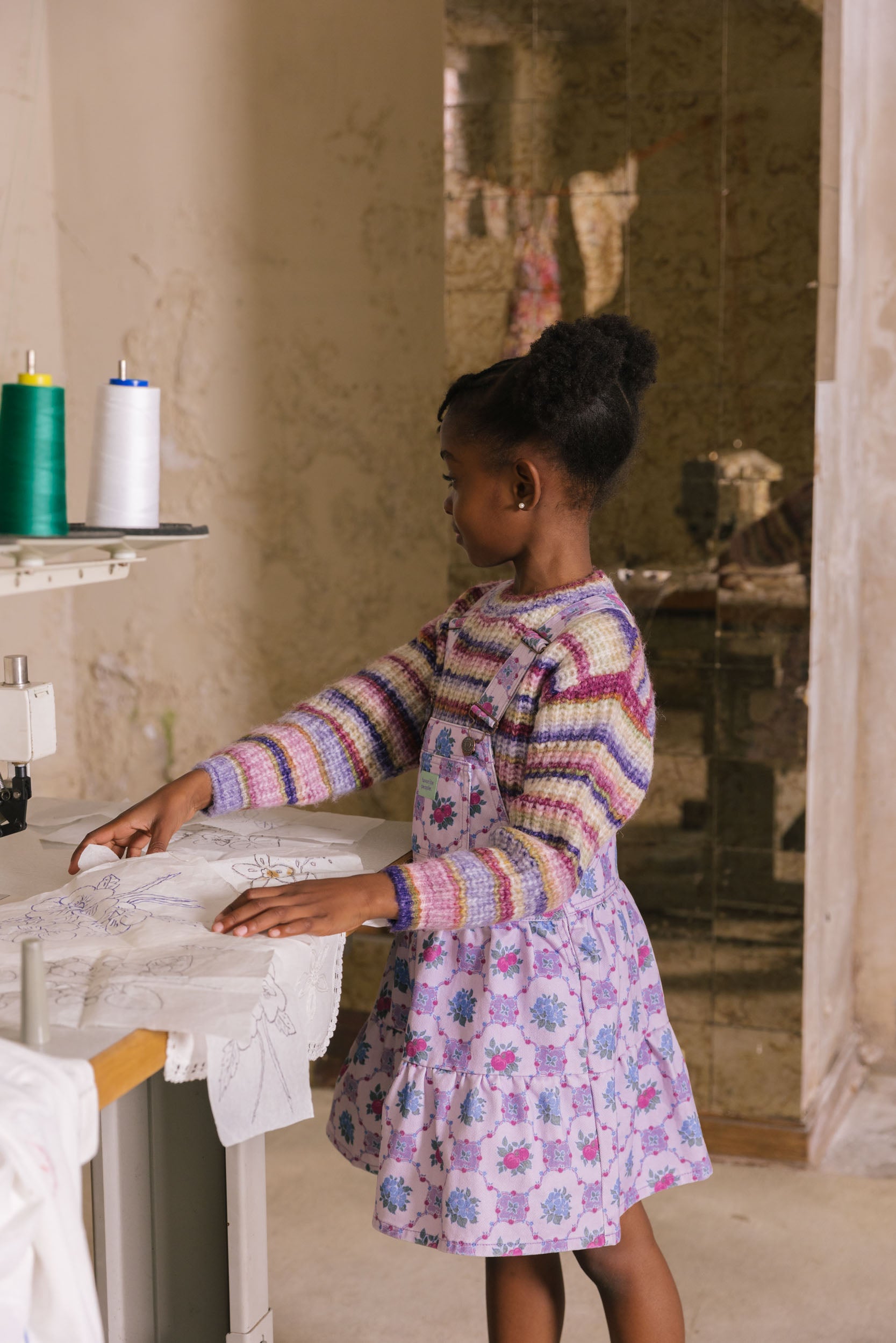Saia jardineiras lilás com decote direito e alças ajustáveis com fechos clássicos de jardineiras. Com bolsos combinados, estas jardineiras destacam-se ainda pela saia divertida de 3 camadas, que acrescenta movimento e originalidade. Fabricadas em Portugal com 100% algodão, garantem qualidade e conforto duradouros. Para melhor conservação, lavar do avesso e evitar misturar com outras peças.